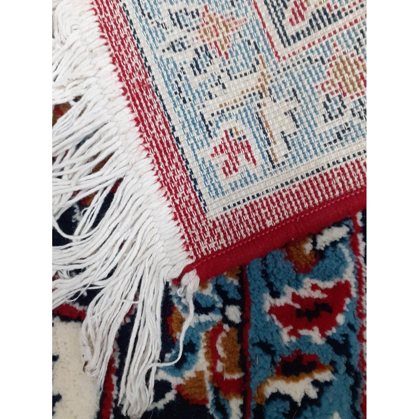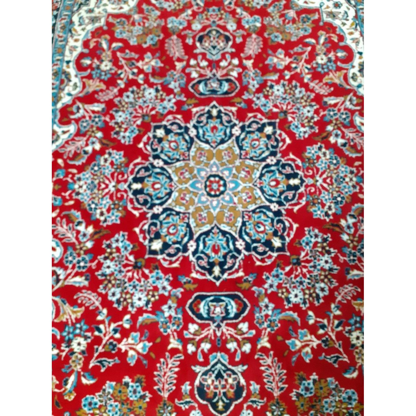 Large vintage Persian rug red base with blue surround and a brown central medallion and intricate floral decoration throughout. A very attractive piece in good condition. 300 x 180 cm approx