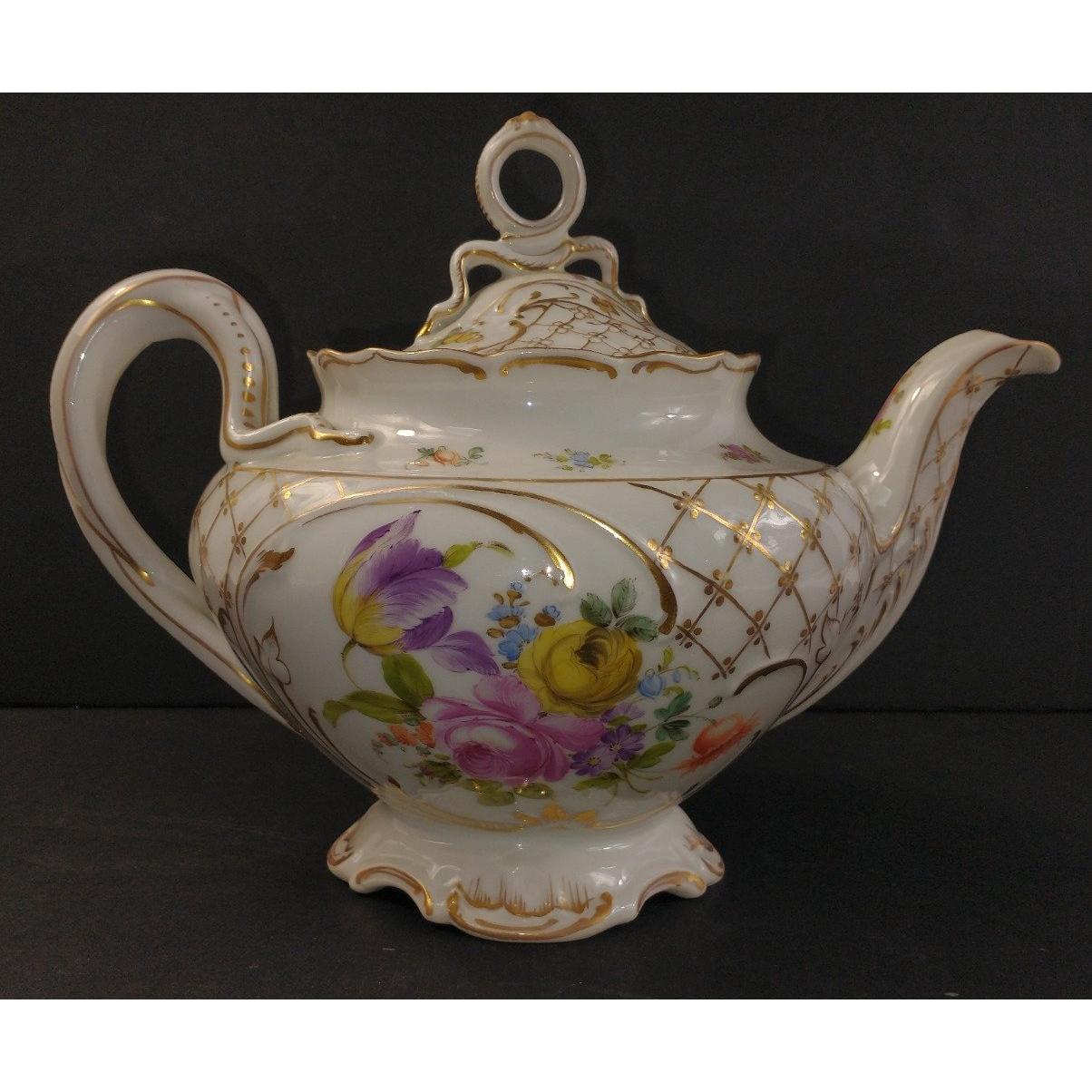 A large DRESDEN porcelain teapot with a flower and gilt decoration standing approx 22cm high, no damageApprox 1 pieces