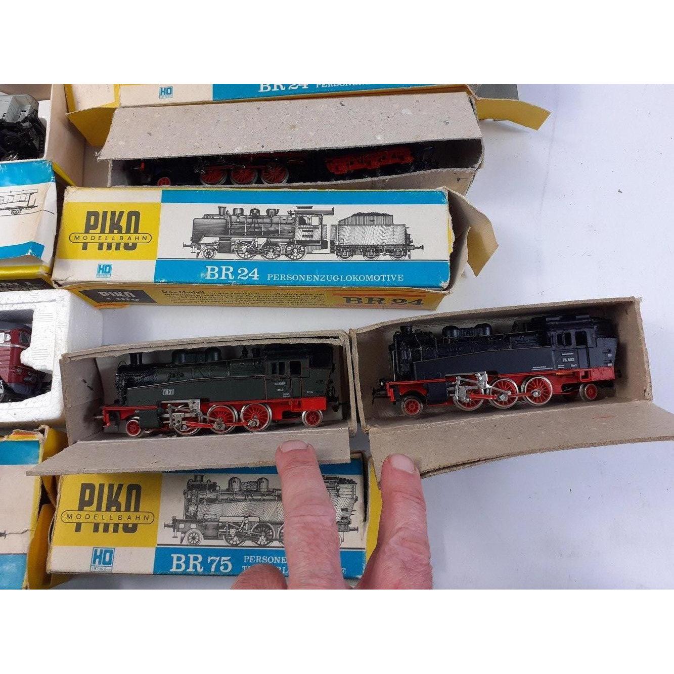 PIKO HO MODEL RAILWAY LOCOMOTIVE COLLECTION>. PIKO HO Scale German model railway LOCOMOTIVES and rolling stock to include PIKO BR24 locomotives 2 PIKO BR75 locomotives x2, PIKO BR120 locomotives and various carriages. All in previously run, used condition.