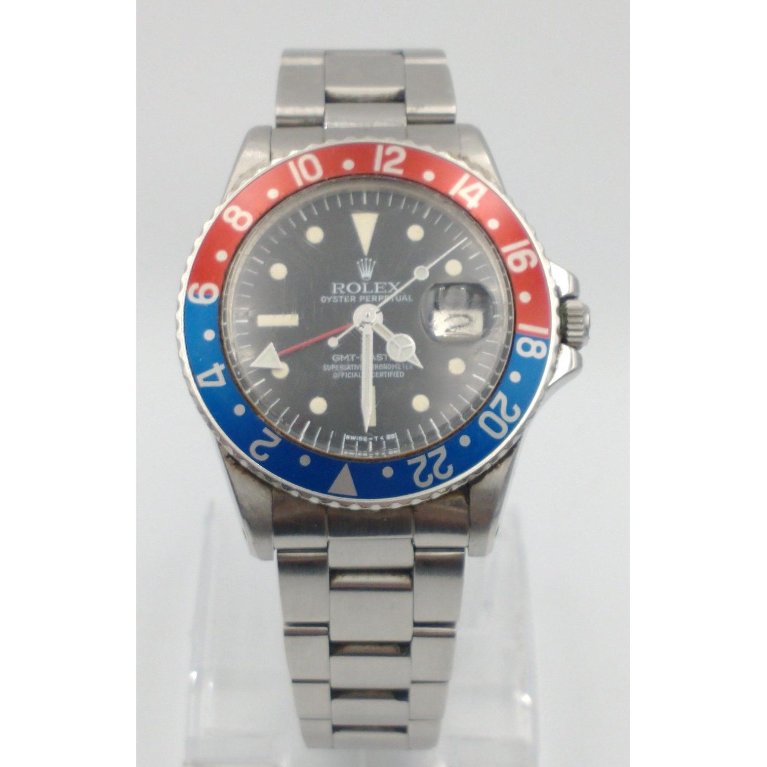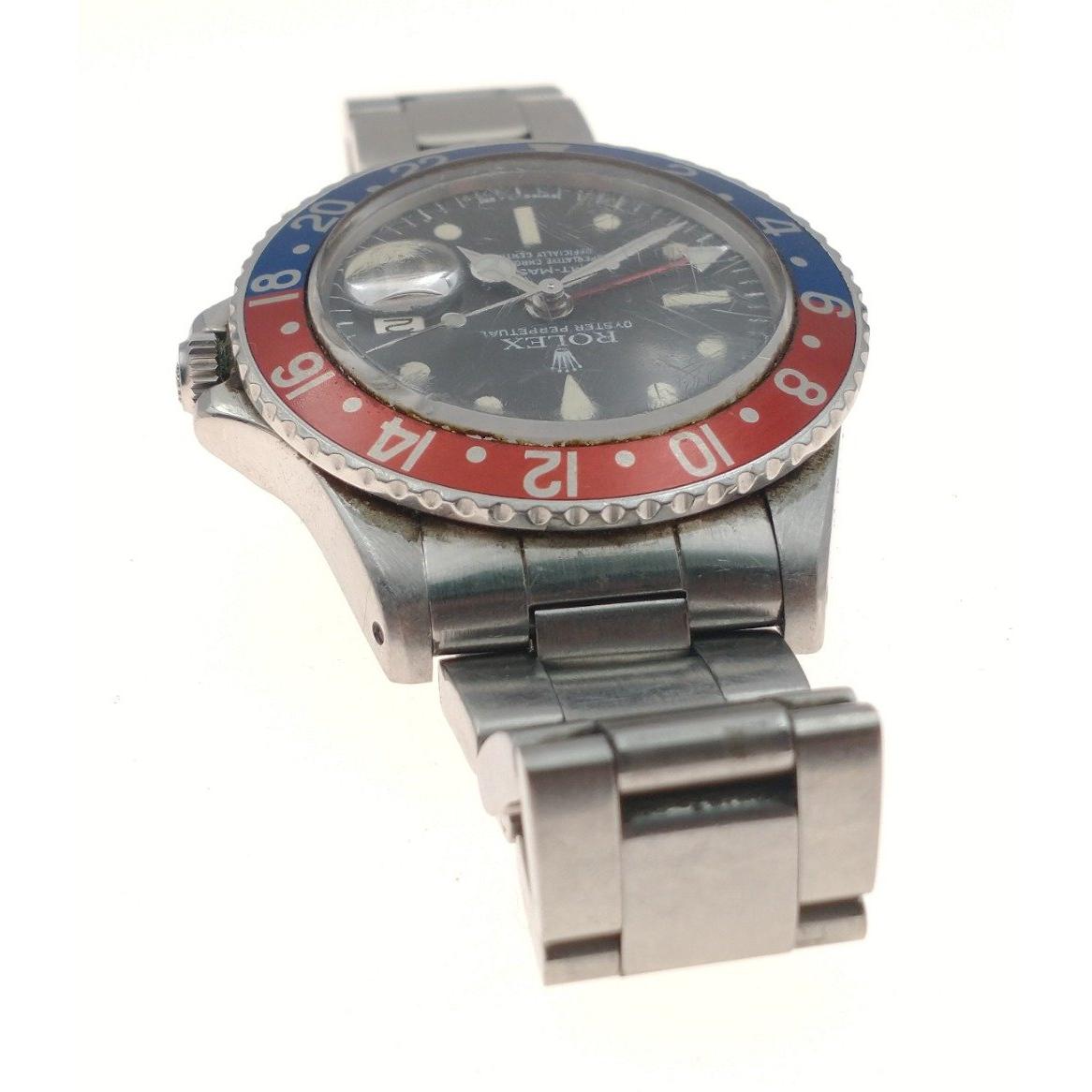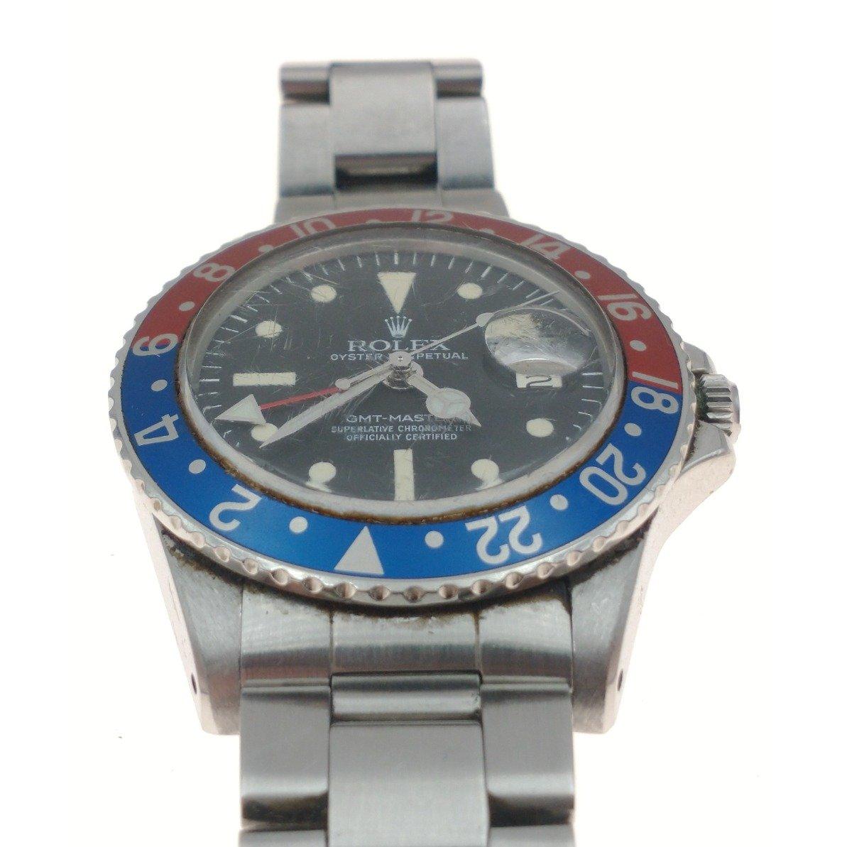ROLEX ''PEPSI'' OYSTER PERPETUAL GMT-MASTER ''Superlative Chronometer Officially Certified. An all original classic with original band, winder, crystal etc. No box or paperwork, handed down by the vendors father as a cherised heirloom and serviced a few years ago at some expense. The watch is working perfectly, there are some light scratches to the crystal and the bezel is not rotating however this likely just needs cleaning. Model no. 1675GMT Master. Serial No. 4219724 Dating to 1976
