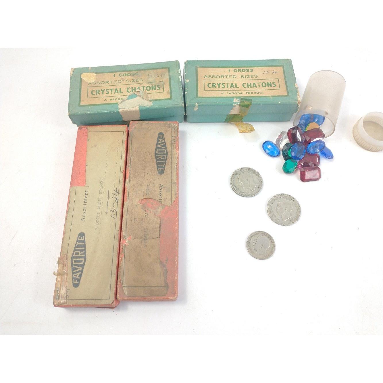 A RETIRED JEWELLER'S LOT - to include vintage retired jeweller's quality boxed crystal chatons and spinnels sets with coloured relacement stones