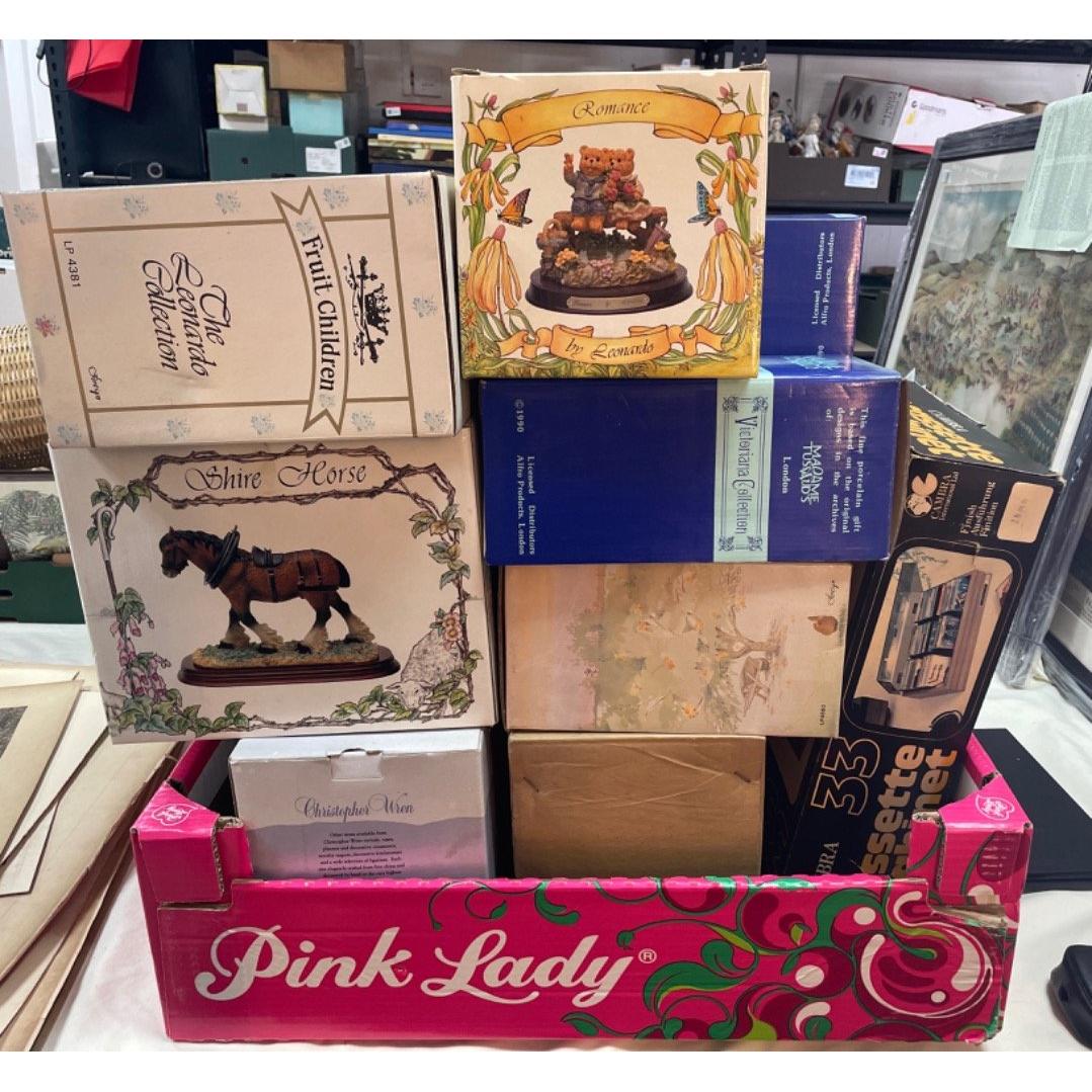 A mixed lot to include MADAME TUSSAUD'S Victoriana Collection Little Boy Blue and Little Miss Muffet, various LEONARDO figurines, a boxed set of 6 LUMINAC cocktail glasses, a boxed mantel clock and much, much more