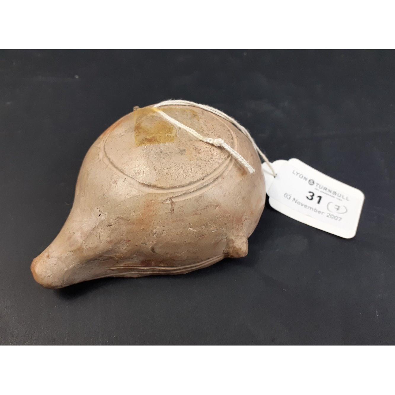 A small painted ROMAN wine taster or oils pourer. Measures 11cm approx and in good overall order. Bought by the vendor at Lyon & Turnbull in 2007 and retains the auction ticket.