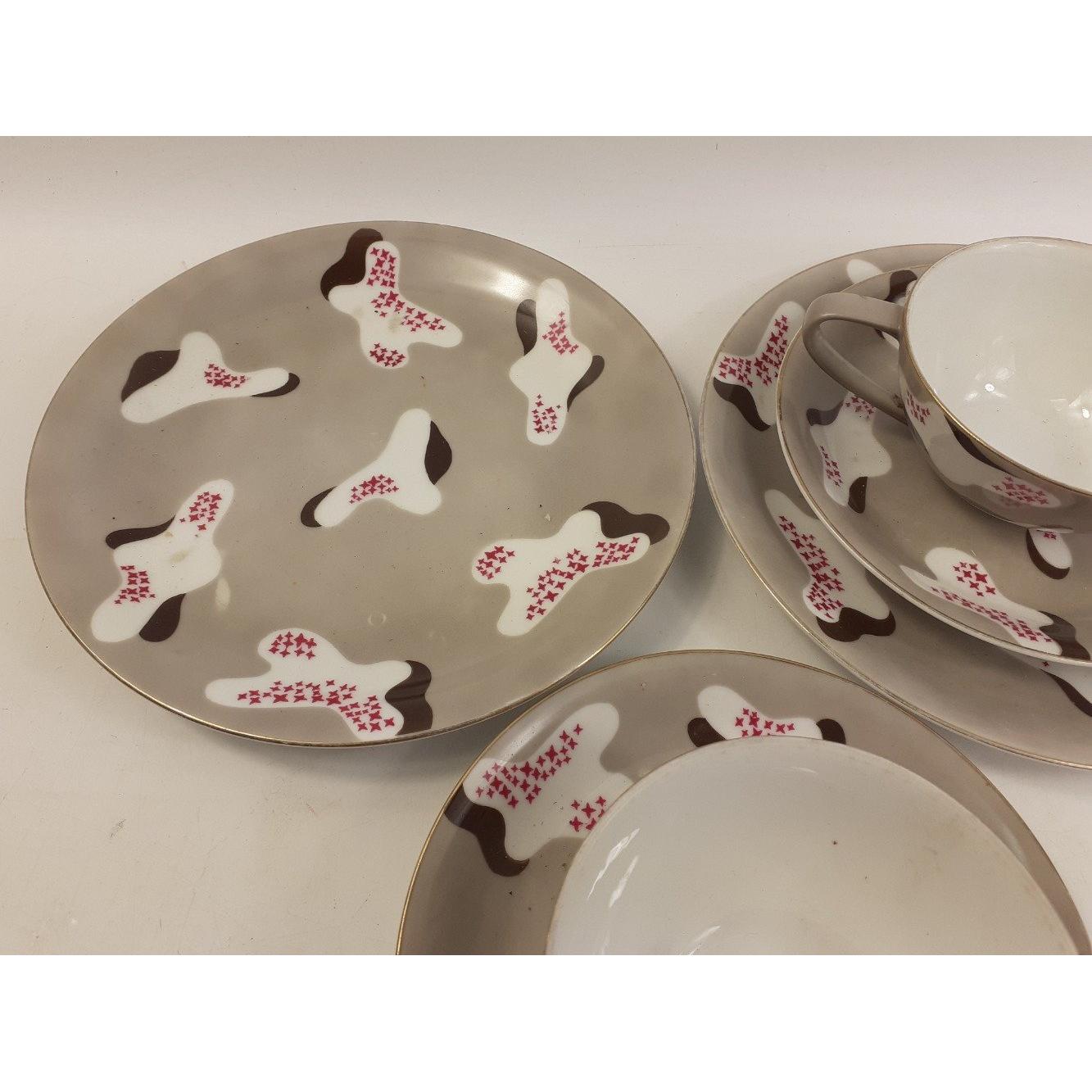 Rarer NORITAKE side plate, tea cup and saucer. A lovely pair of trios in apparently an unusual pattern. Approx 6 pieces