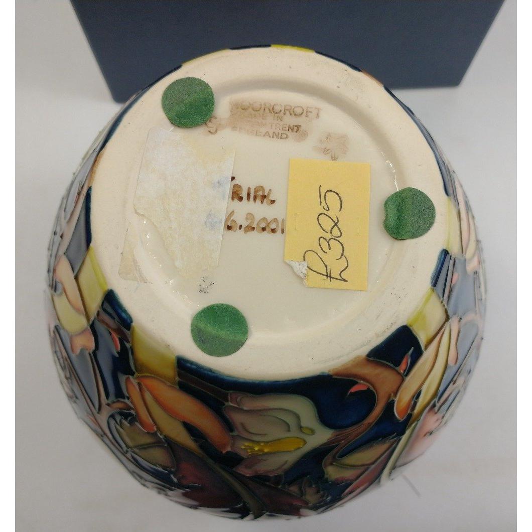 A boxed MOORCROFT trial piece vase dated 4.6.2001, stands approx 18cm high, original price £325Approx 1 pieces