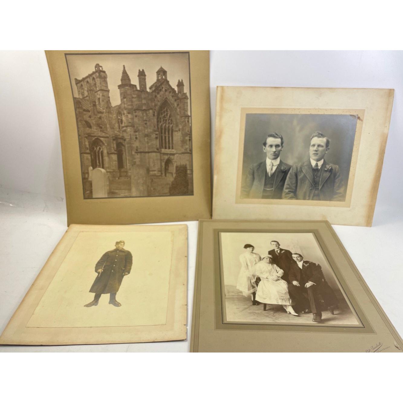 A super collection of old photographs many with local PEEBLES interest. Many by McKnaught & Sons of Peebles. Highlights are Peebles Masonic Group outside the Burgh Hall, likely Beltane Fancy Dress Group with a Charlie Chaplin & Keystone Cops, Fishing on the Tweed with Horsburgh Castle in the background, some WWI era military portraits and lots more of interest. A very interesting lot.
