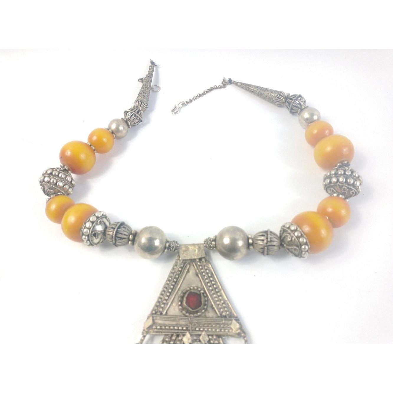 Substantial Middle Eastern vintage necklace, purchased in the Yemen. Faux amber coloured beads with white metal links. Measures 60cm across approx excluding catches and weighs in at a hefty 270g