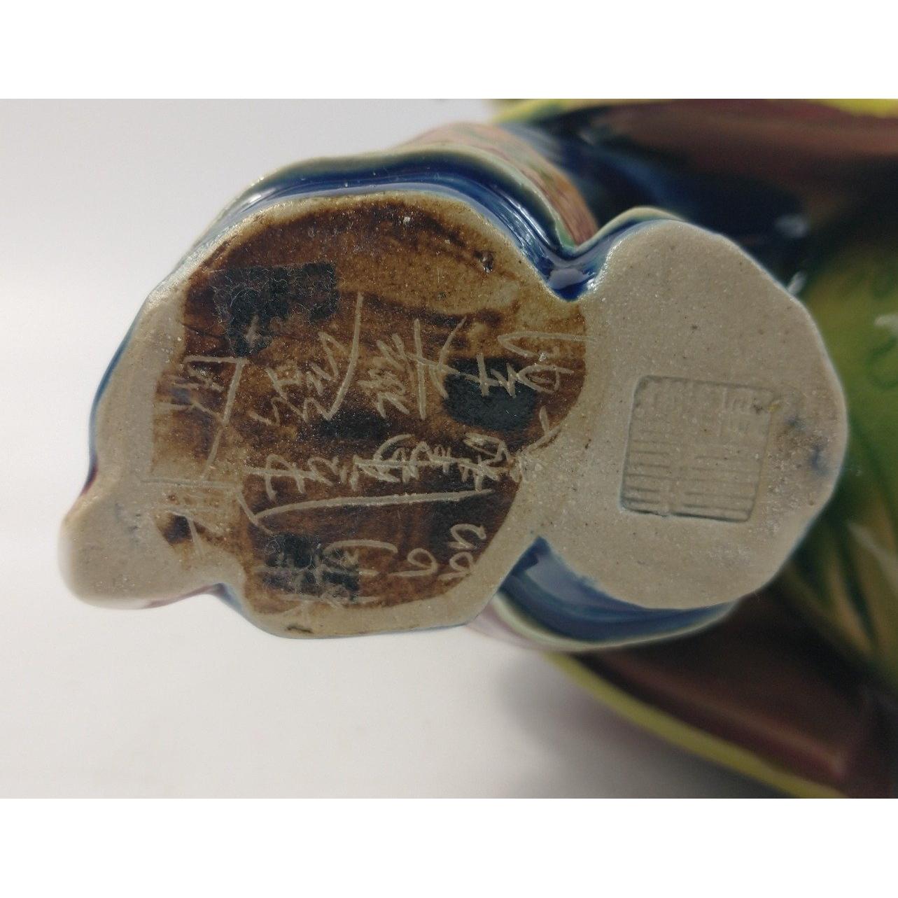 A quality two piece Folk Art porcelain ceramic Chinese girl seated and playing a zither, a free-moving bangle on each wrist, signed to base. Slight damage to two fingers. Figure stands approx 24cm high, zither measures 16x10cm