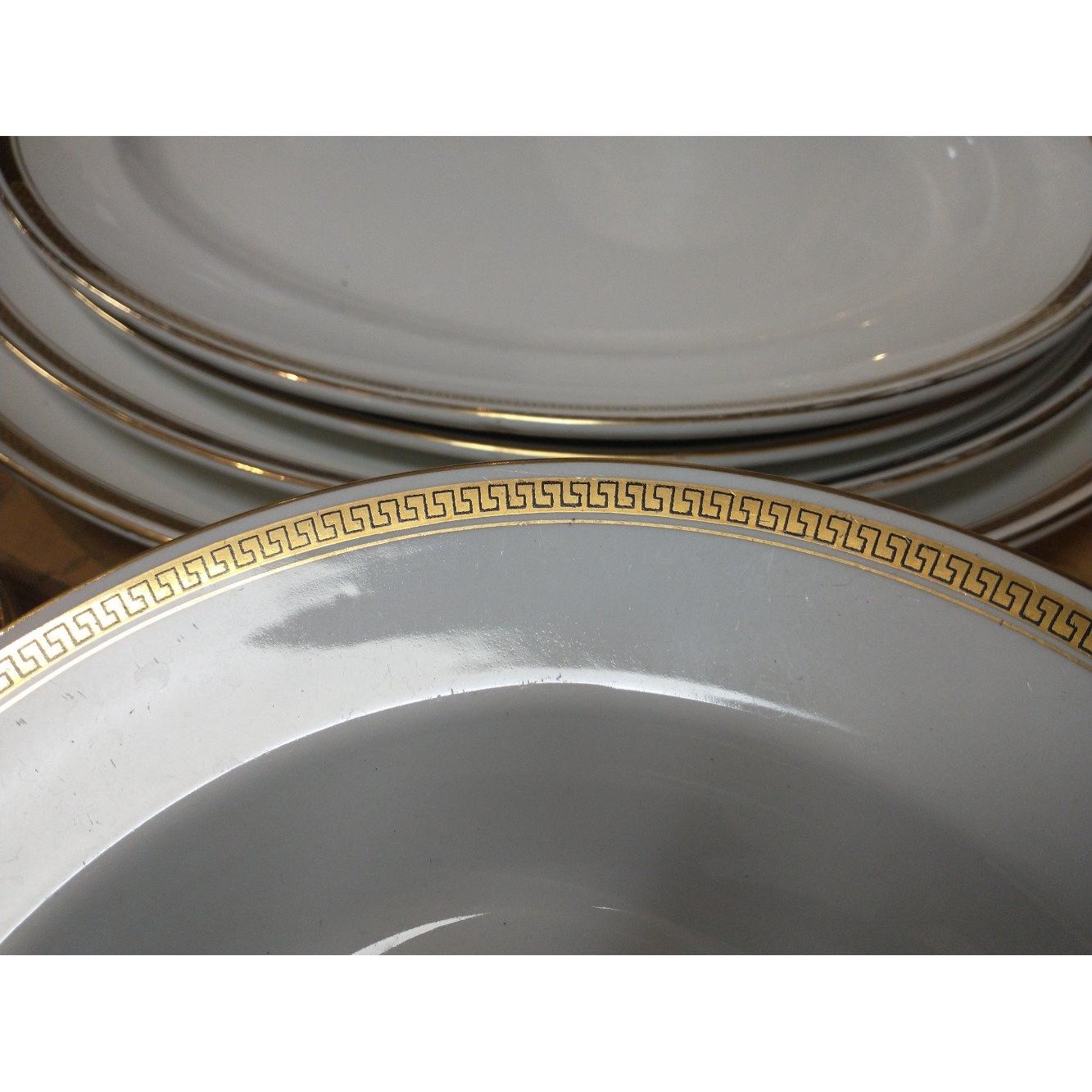 A large Greek Key design dinner service with ashets, soup tureens, gravy boat, dinner plates, side plates, dessert bowls etc