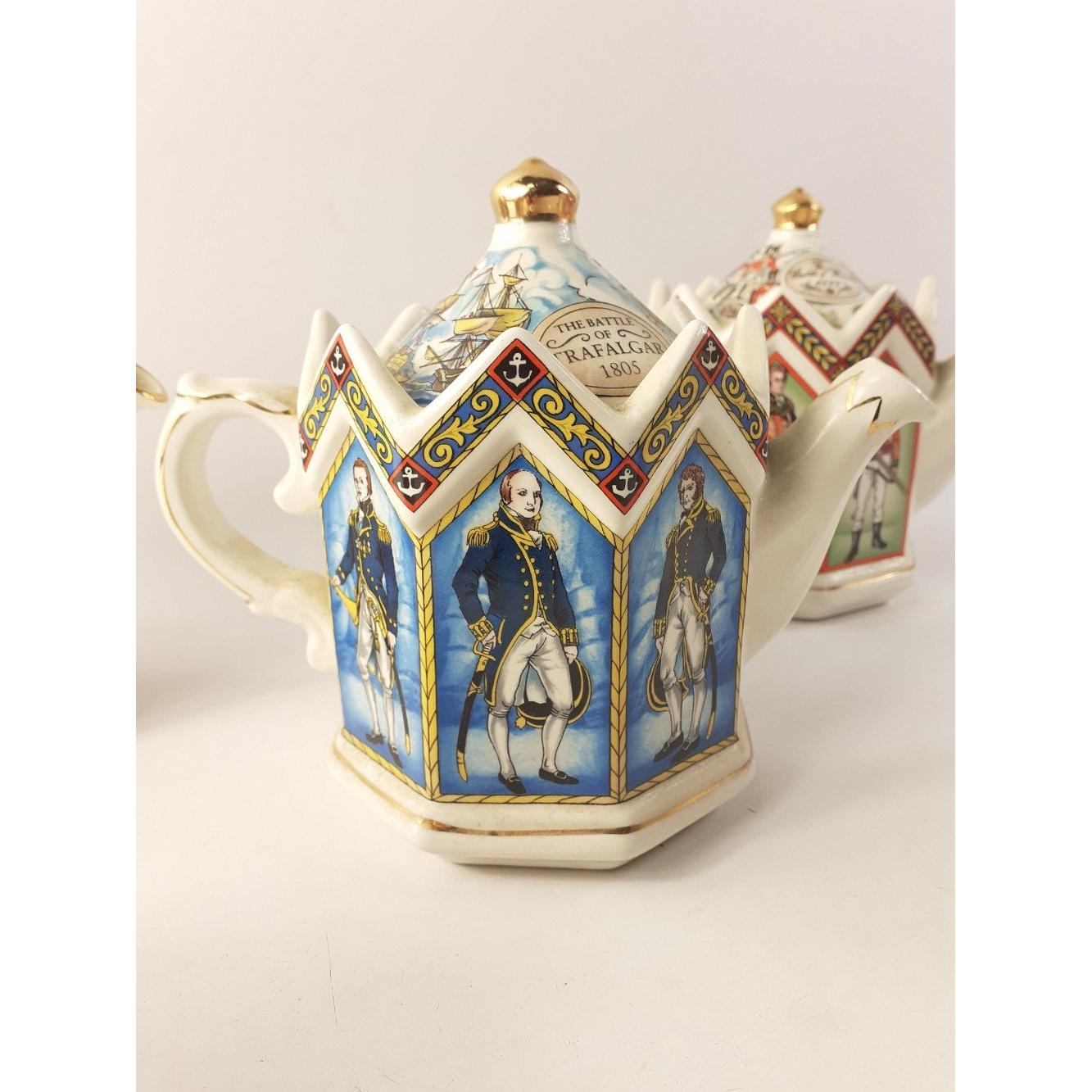 SADLER CLASSIC COLLECTION of five teapots to include The Battle of Waterloo, The Battle of Trafalgar, The Battle of Agincourt, The English Civil War, Henry VIII and his six wives. All complete with lids and in good undamaged condition.