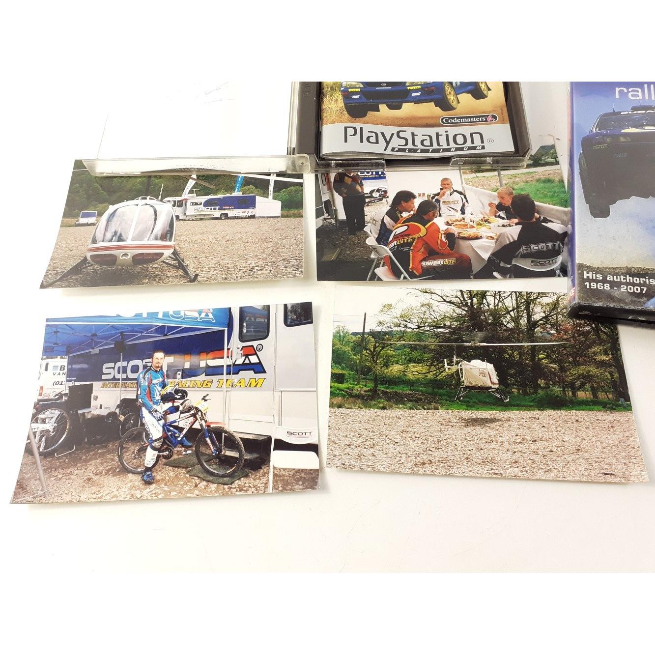 Signed by COLIN McRAE - a Colin McRae Rally PlayStation game (SLES 00477) and a DVD of his authorised story 1968-2007 - Colin McRae Rally Legend. Also includes some personal photos of Colin McRae interest including a helicopter and the Scott USA Team tour bus