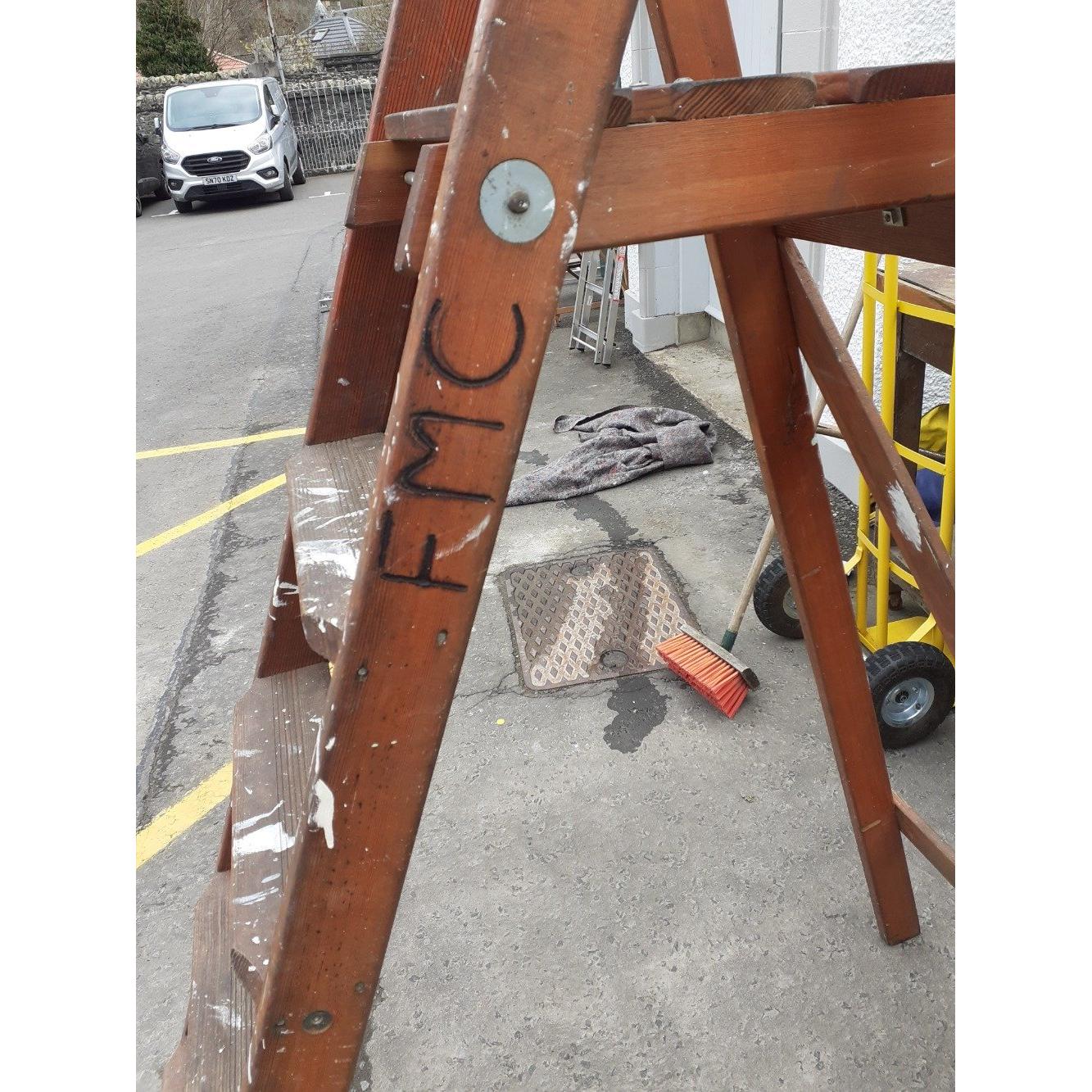 Substantial set of step ladders. Marked FMC and brought north by the vendor from the Ford Tractor Plant in Basildon. Five steps plus top plinth. Measures 140cm when open to plinth. A very useful set of steps.