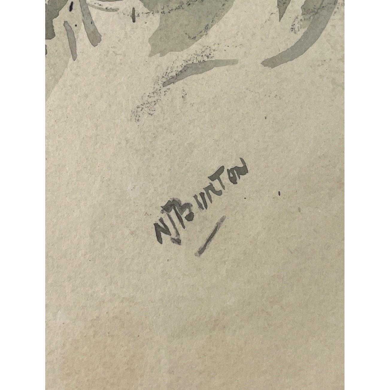 A framed watercolour of a young dog signed in pencil by NANCY JANE BURTON RSW 1891 - 1972, frame measures 49x47cm, visible work 29x27cmApprox 1 pieces