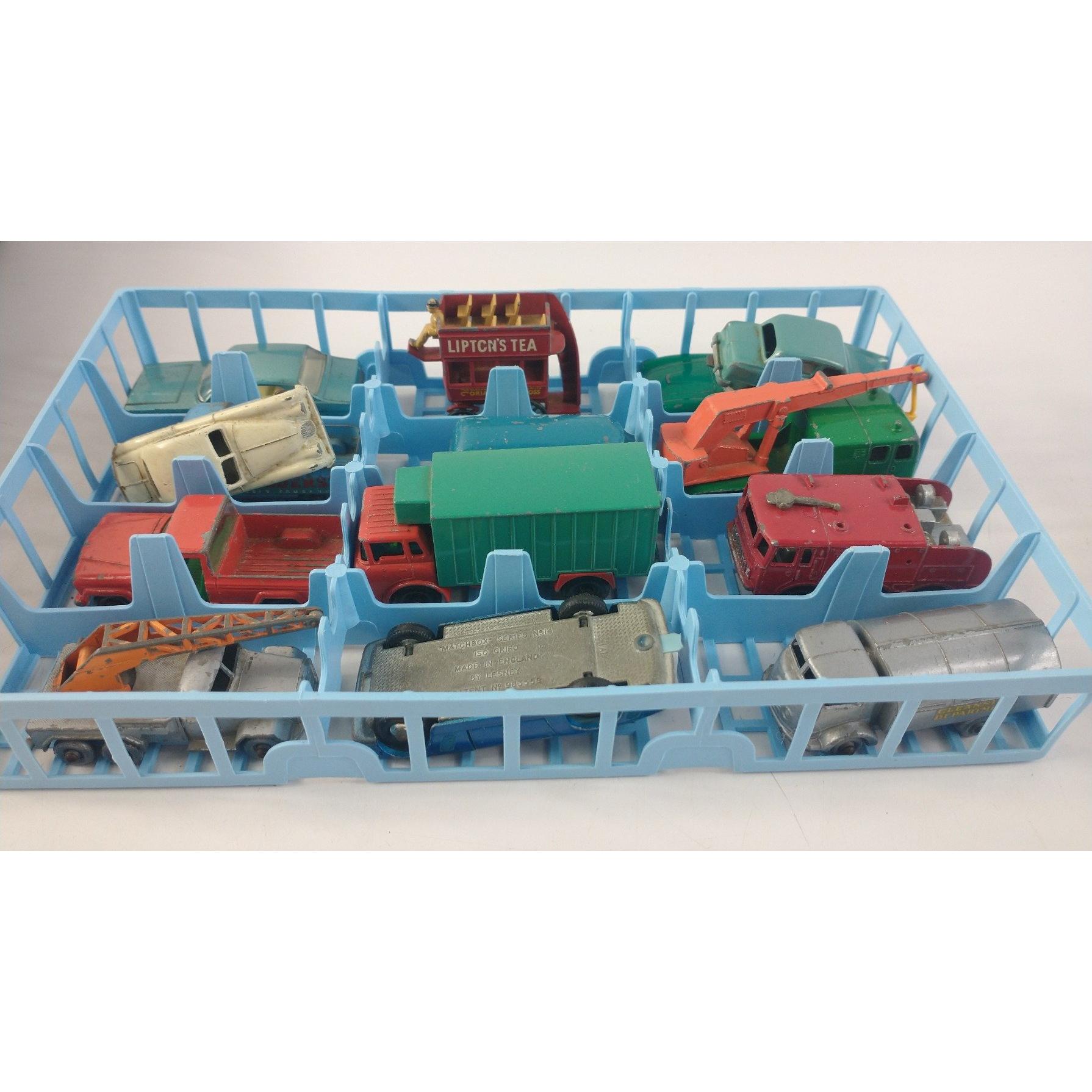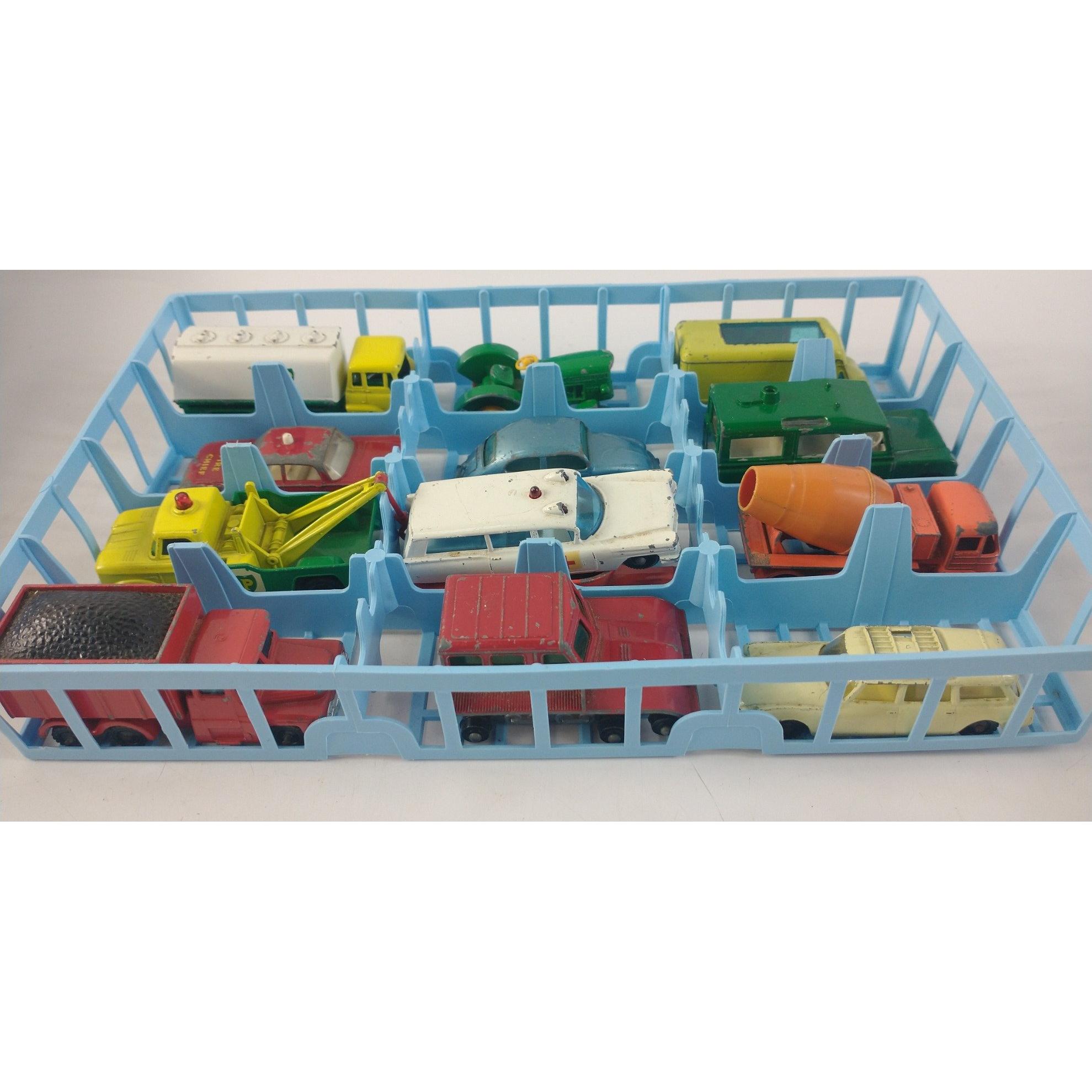 Matchbox collectors case with a super collection of over 50 Matchbox Lesney original issue diecast vehicles mainly dating to 1970s. The case handle is broken however the models are in generally good condition.