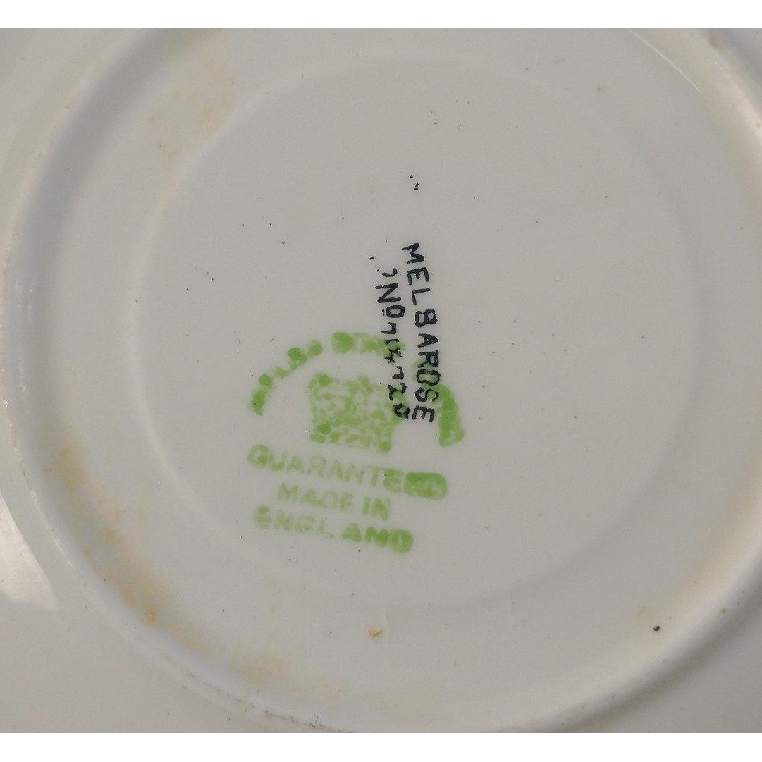A part tea service in bone china MELBA WARE MELBA ROSE Pattern reg. no.714720, to include two sandwich plates, eleven side plates, ten cups, a sugar and a cream bowl, one side plate with damage and one cup with a crack. Otherwise pieces are in good order.