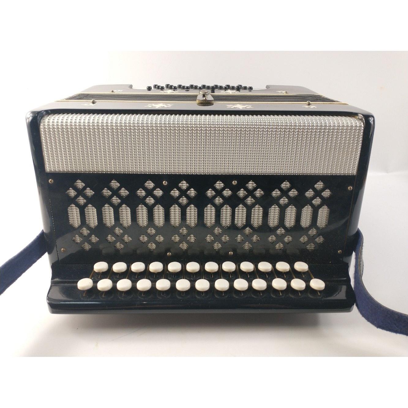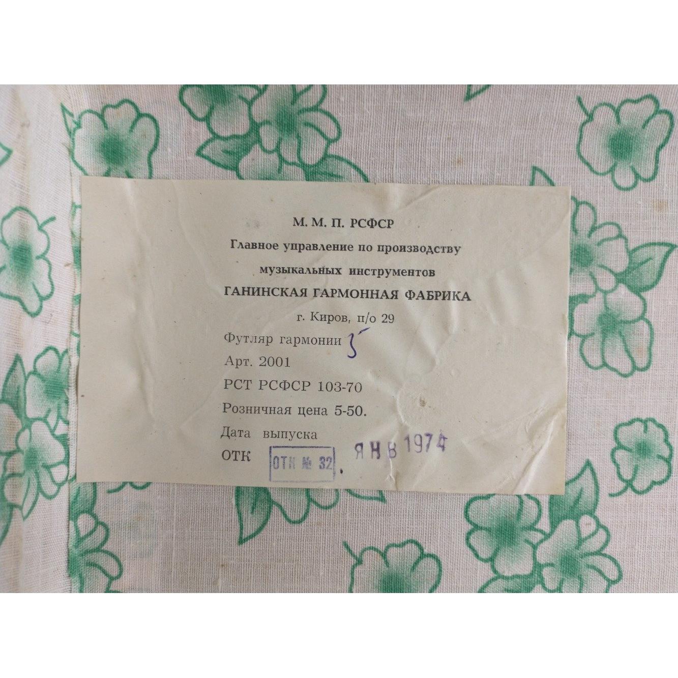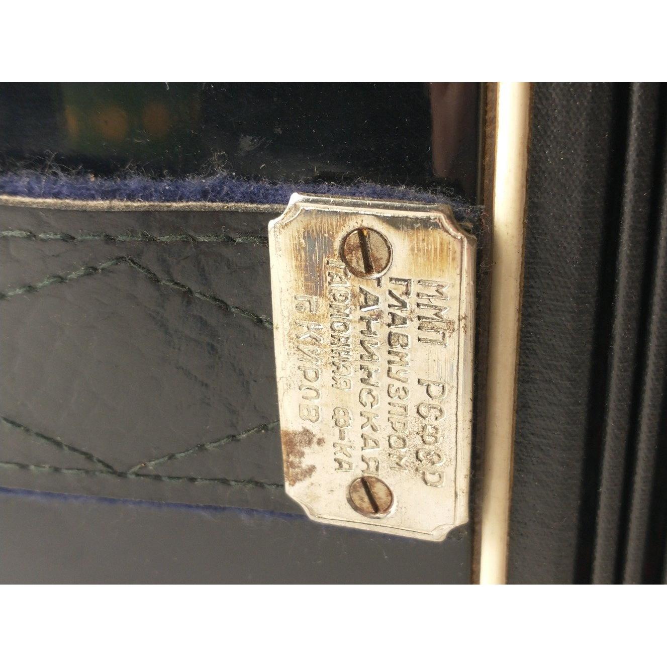 A small vintage Russian button accordian in case. Dated 1974 in lid. Accordian is in lovely useable condition and the case is also good. Bellows appear to be in good order and the accordian appears to work well, no stuck buttons etc.