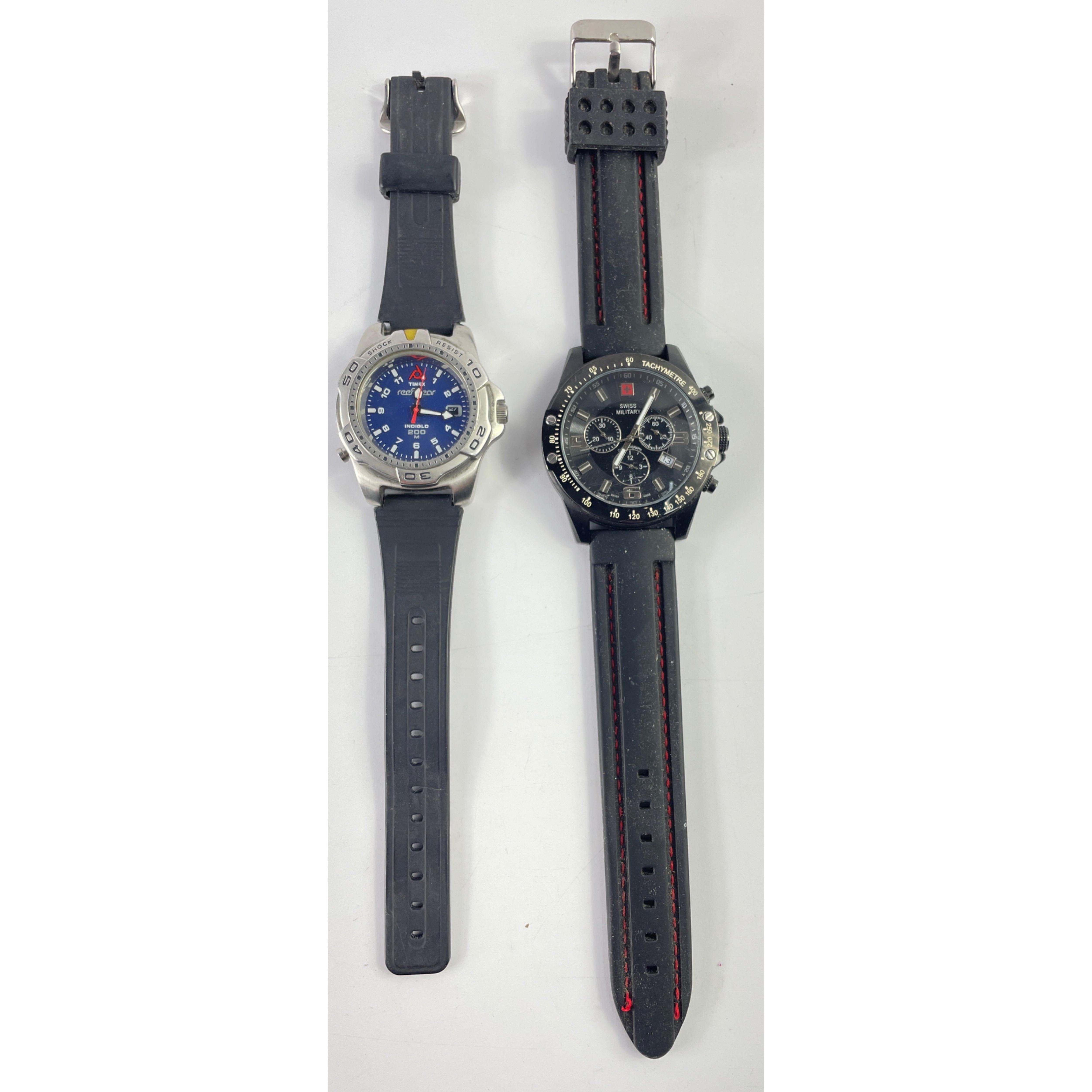 A gent's SWISS MILITARY watch (98189G), and a TIMEX REEF GEAR watch with rotating bezelApprox 2 pieces