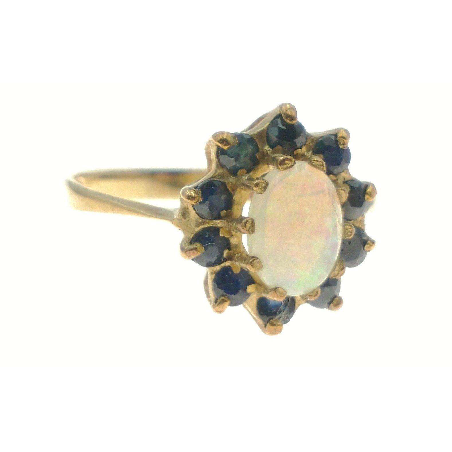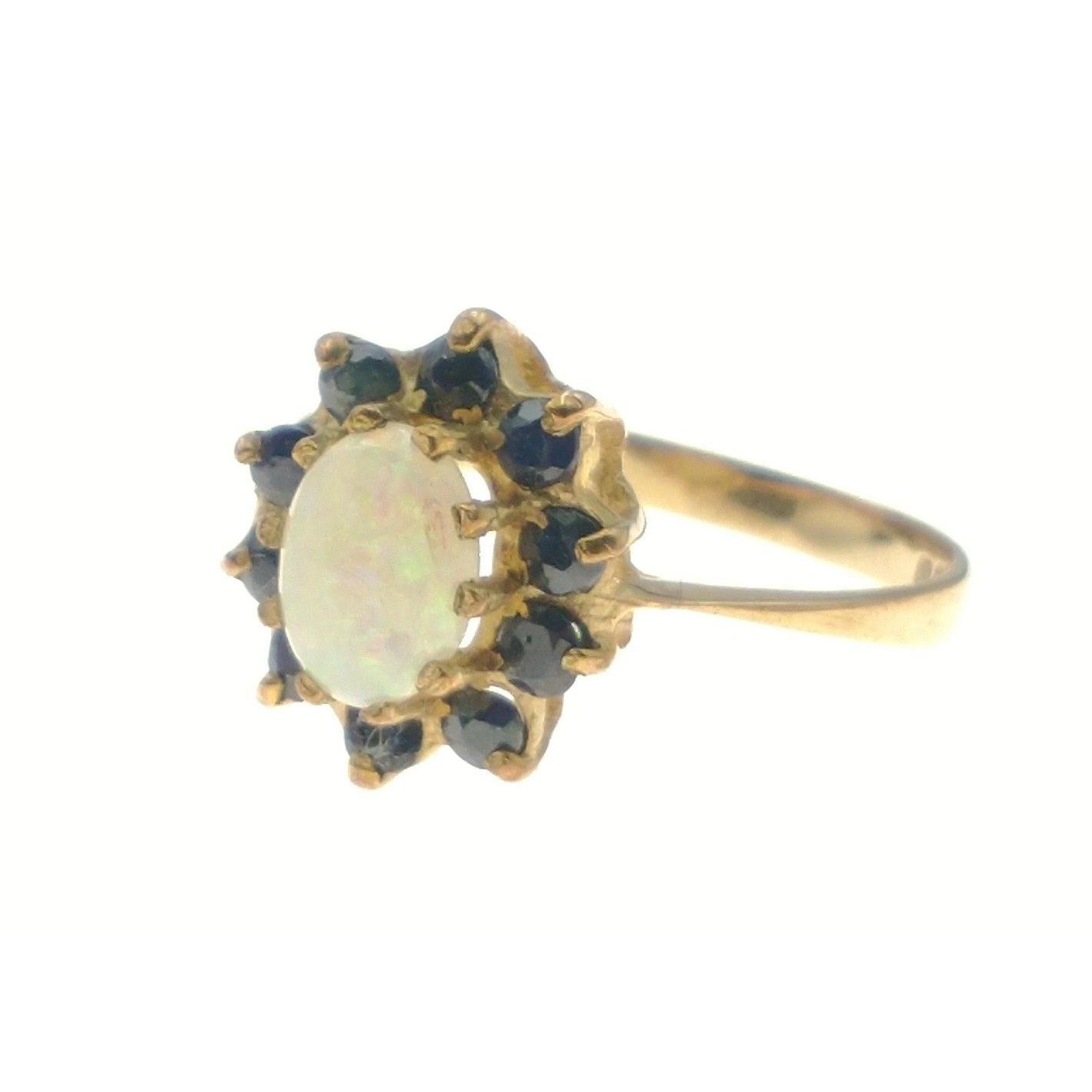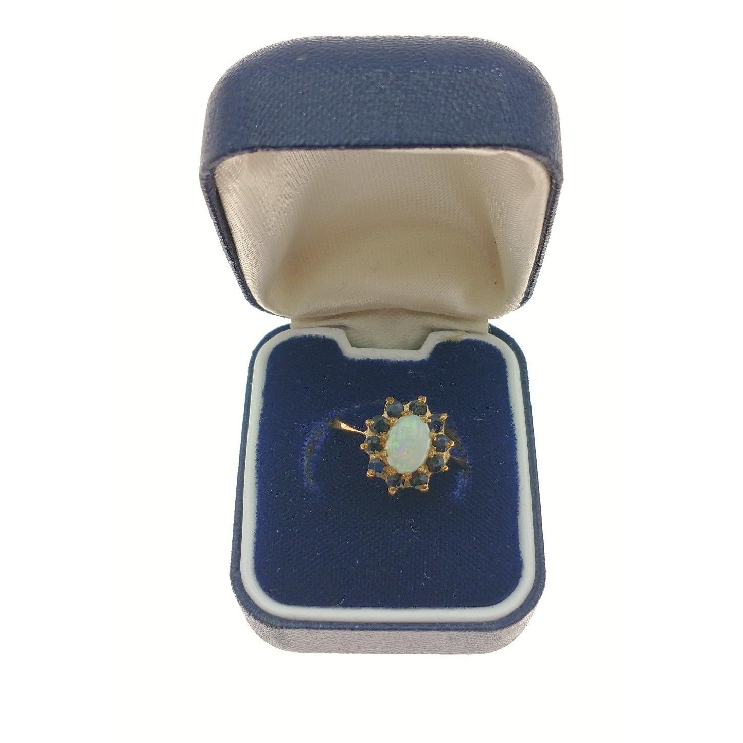 OPULENT OPAL! A 375 hallmarked yellow gold opal and blue stone ring, size M, gross weight 1.75gApprox 1 pieces
