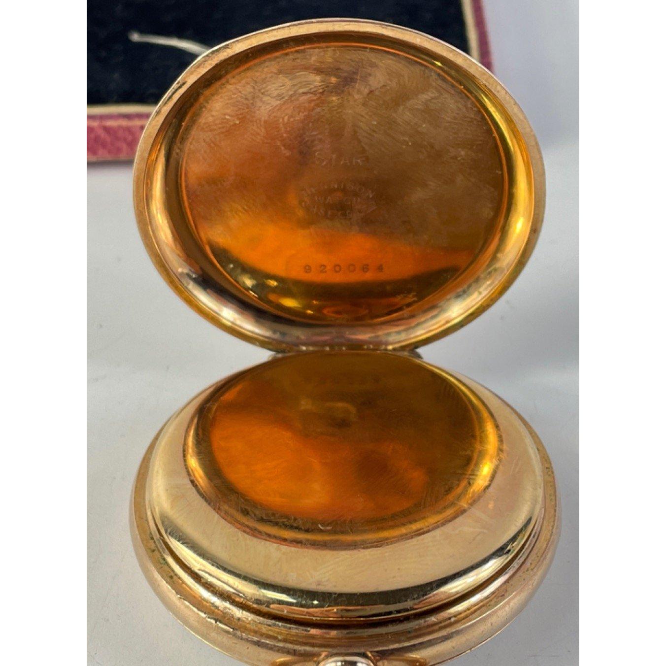 A rare PEEBLES gold plated gentleman's Victorian pocket watch in working order. A beautiful condition Dennison case 920064. Slight wear to legend on face but PEEBLES clearly visible and supplied in a Dodds of Eastgate jeweller's box. Ticking away fine with a gentle wind. Looks like a cracking gold watch but at a fraction of the cost!.