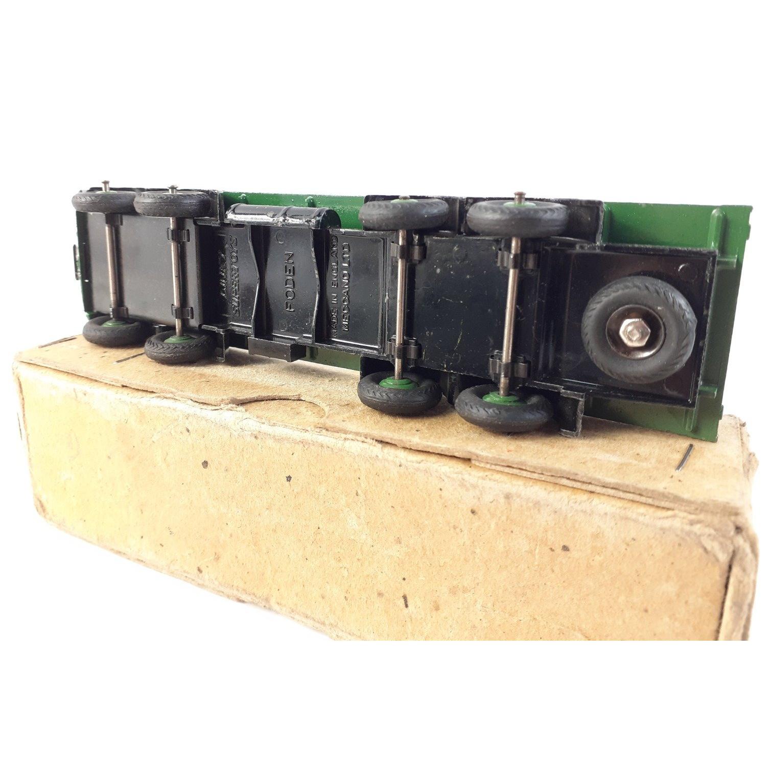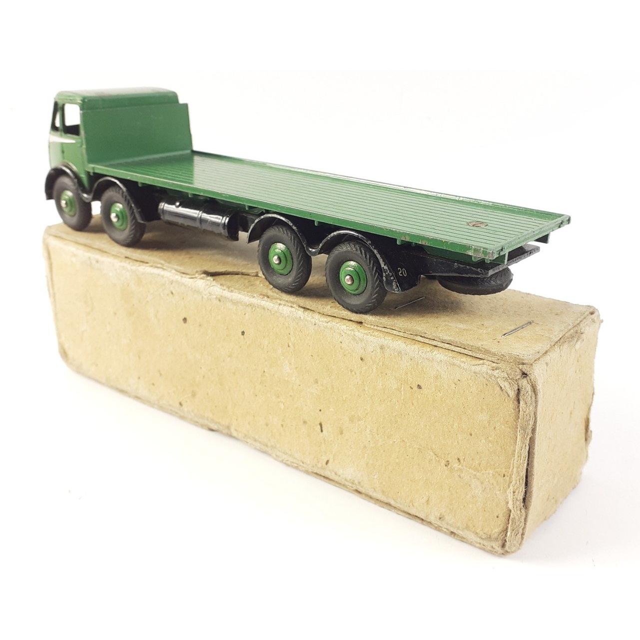 DINKY SUPERTOYS No. 502 Foden Flat Truck. All green cab version. Green original paint and supplied in first early version box. Minor paint loss to cab, otherwise in very good condition