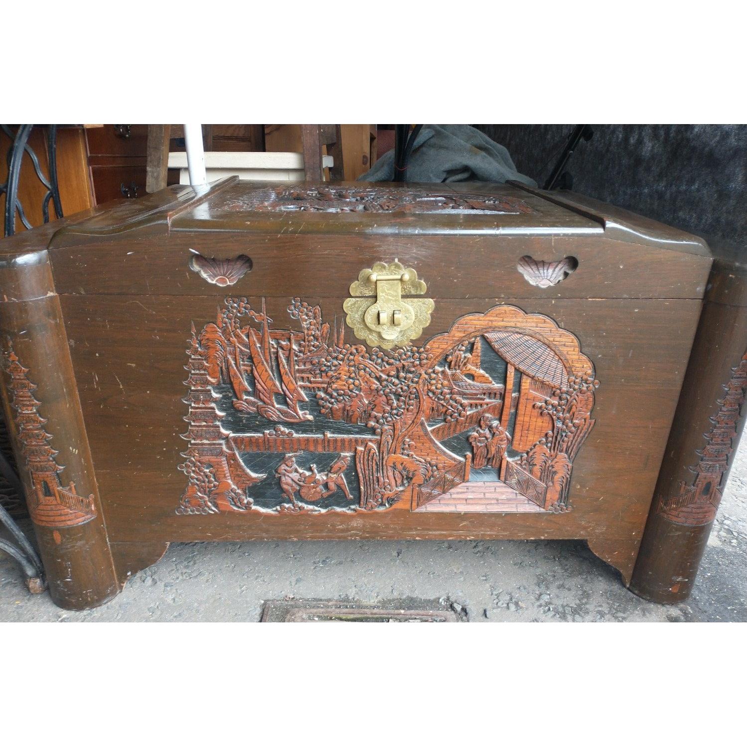 An ORIENTAL camphor wood chest circa 1940's (brought back just after the 2nd World War) dimensions 2.5ft wide x 18" height x 18" depth approx