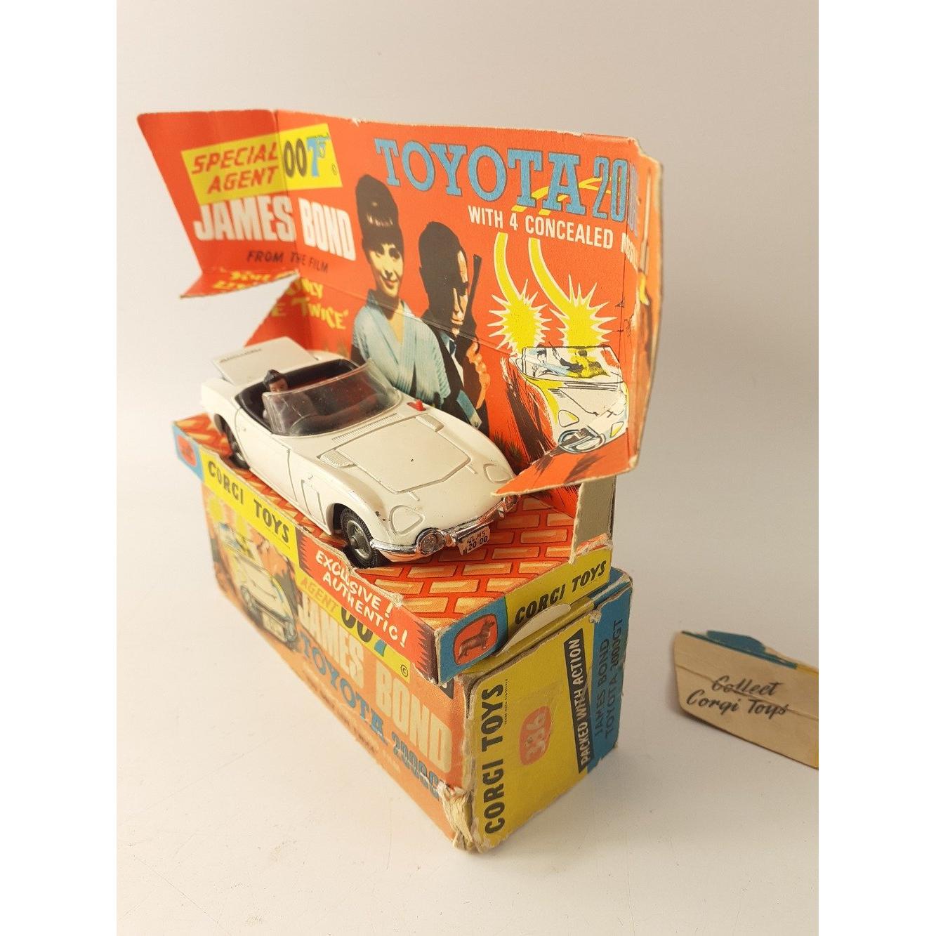 CORGI James Bond 336 Toyota 2000GT You Only Live Twice 1:36 original from 1967 complete in box with secret instructions safely stored beneath. Nice condition, the box does have a wear with missing flaps, wear and a tape repair. The internal plinth is better, rockets missing.