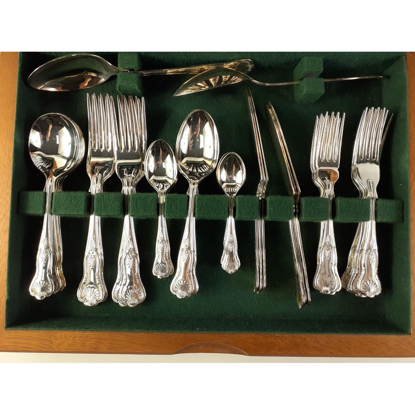 A lovely well-looked-after Slack & Barlow (Sheffield) Cutlery Set in original wooden box. EPNS A1 quality. 62 pieces in total to cover 6 place settings.Approx 1 pieces
