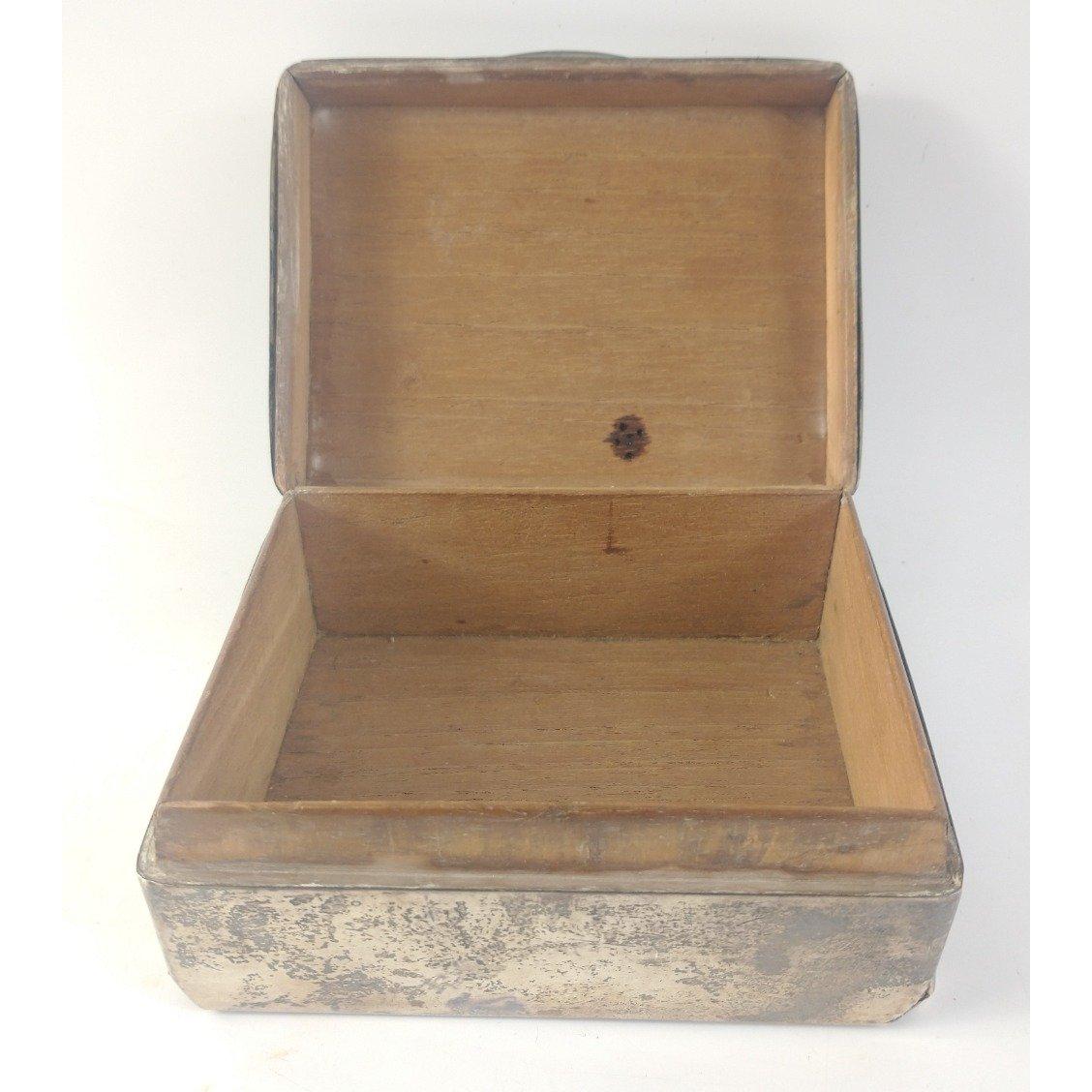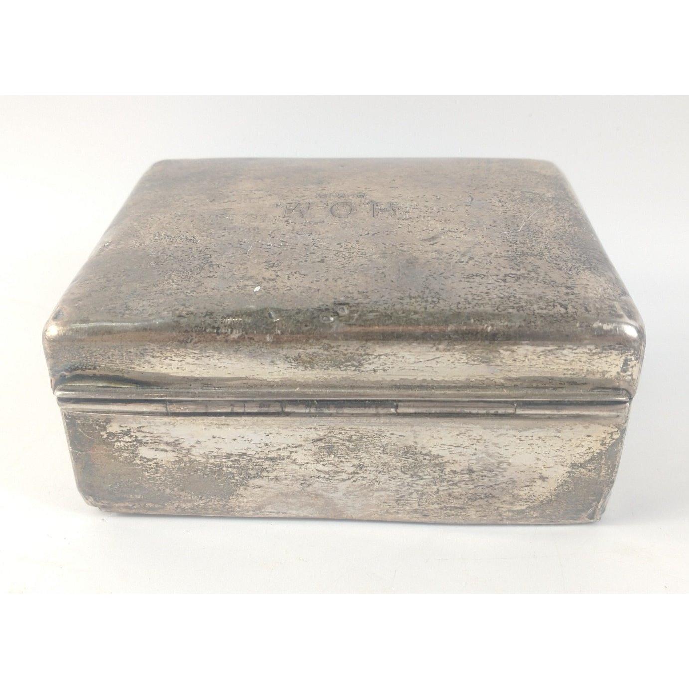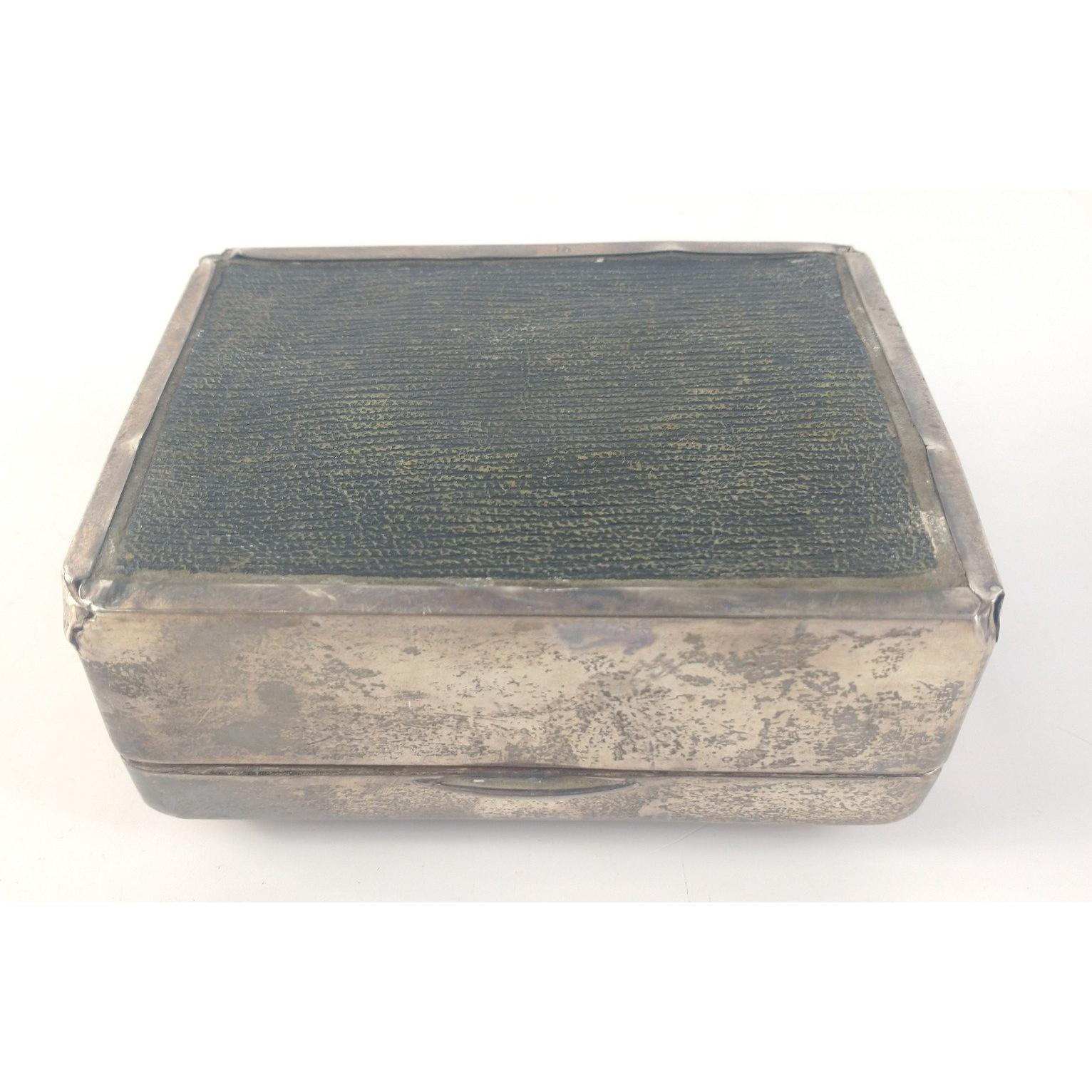 A wooden monogrammed cigarette box encased in indistinct hallmarked silver, measures12x9x5cm, gross weight 238g approxApprox 1 pieces