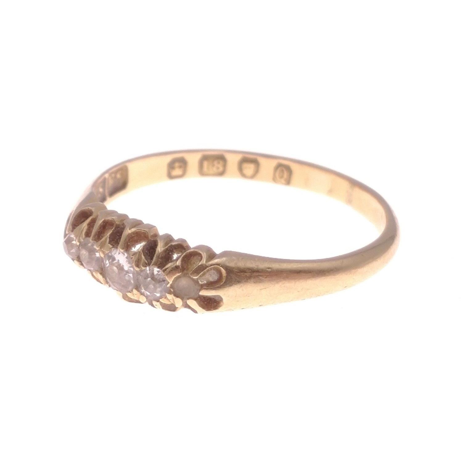 An 18ct 5 diamond ring, fully hallmarked for London made by Cornelius Desormeaux Saunders & James Francis Hollings (Frank) Shepherd, size O/P, gross weight 2.2g approxApprox 1 pieces