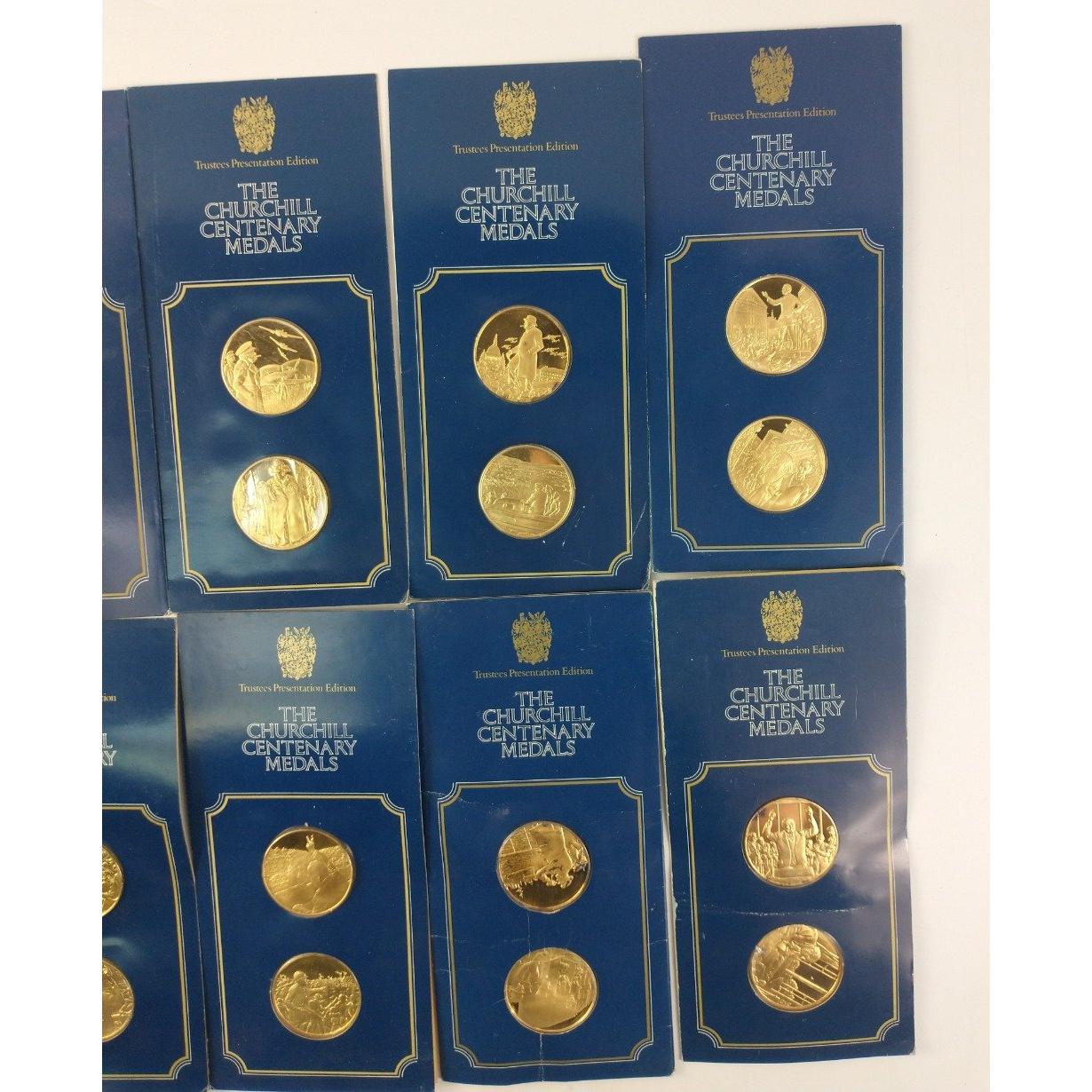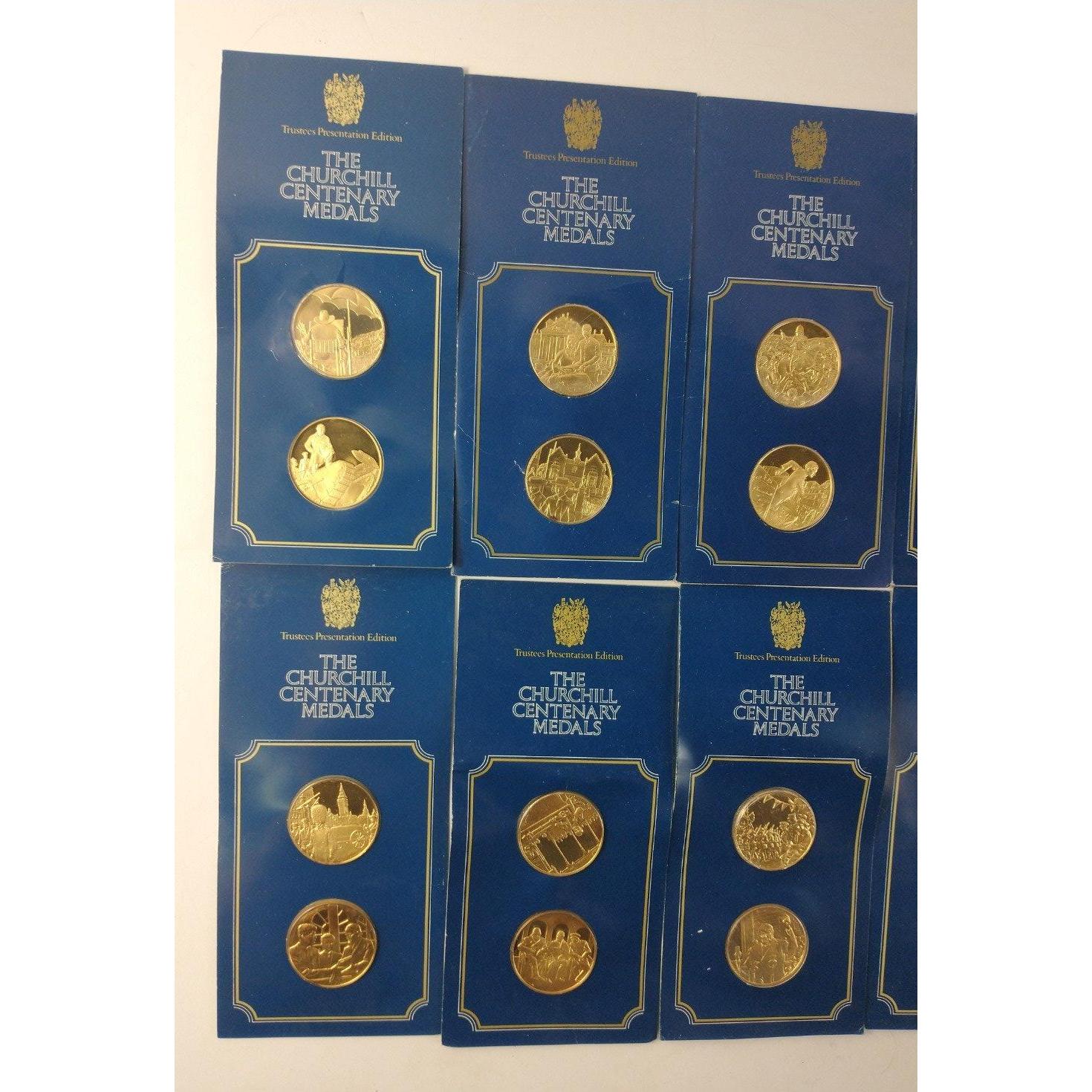The Churchill Centenary Medals Trustees presentation edition. 24 Medals all with full silver hallmarks on the rims and with a gilt gold finish. All but one in plastic holders, a few of the holders have wear but an interesting and highly collectible set.
