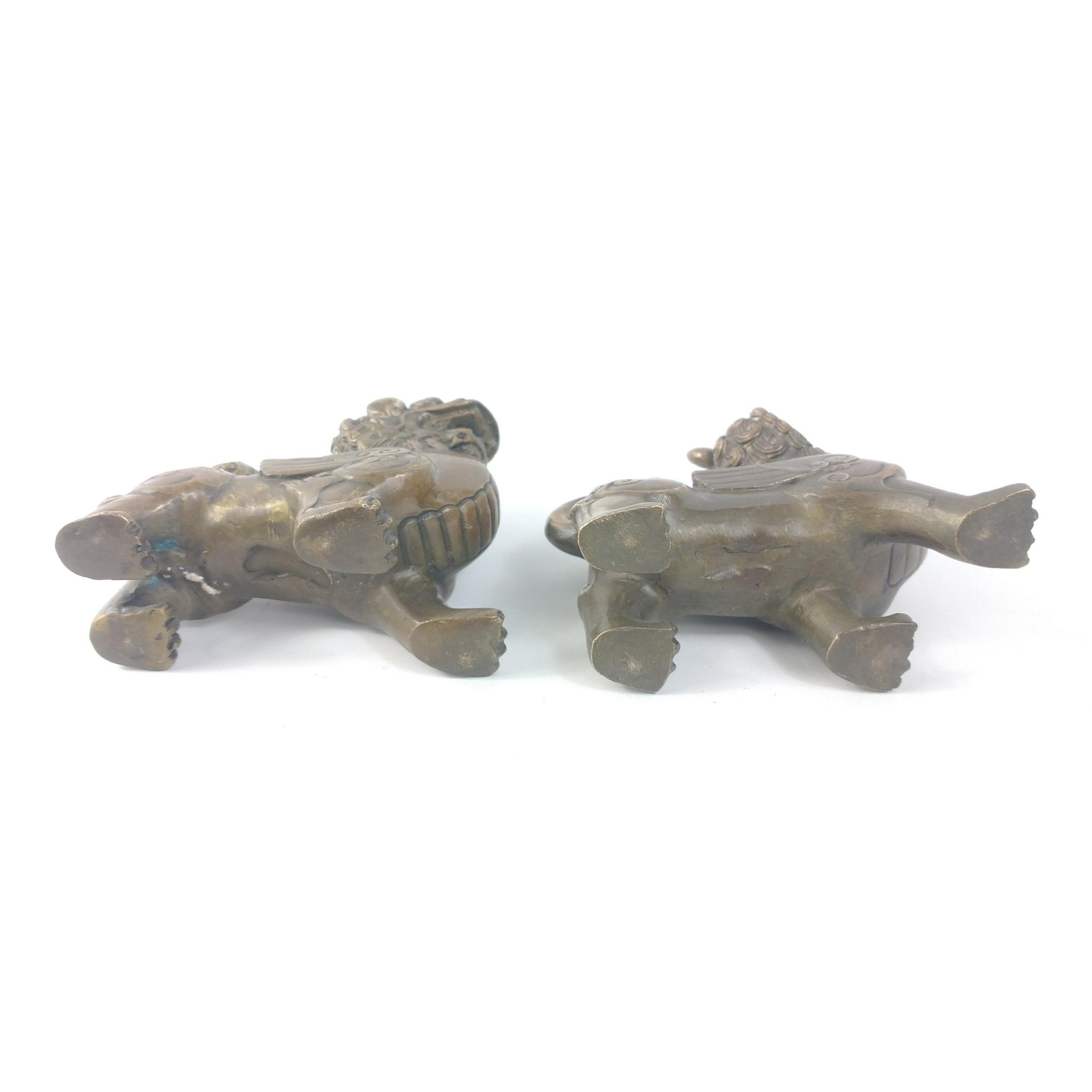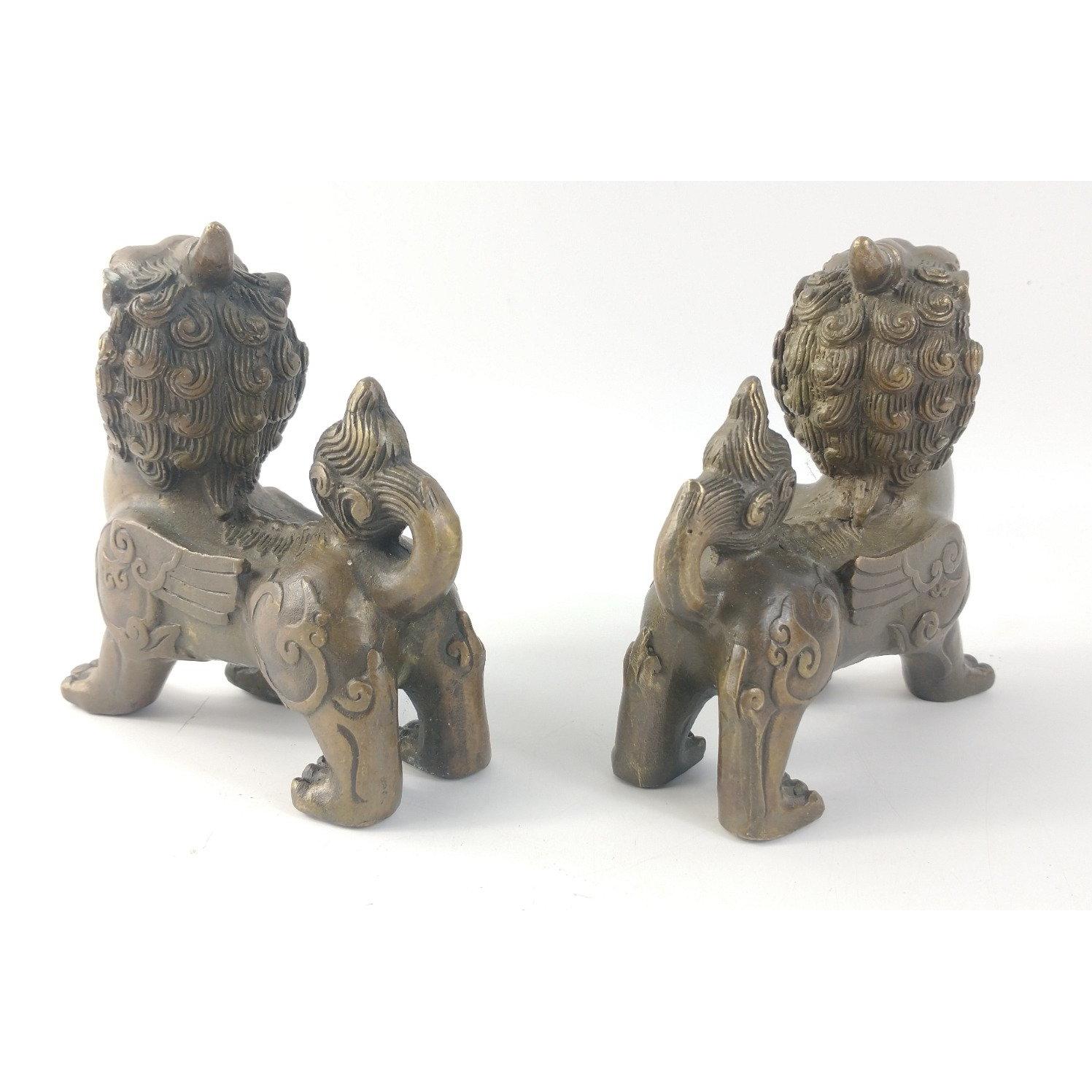 A pair of brass-style oriental Foo dragons approx. L10cm x W5cm x H11cm.Approx 2 pieces
