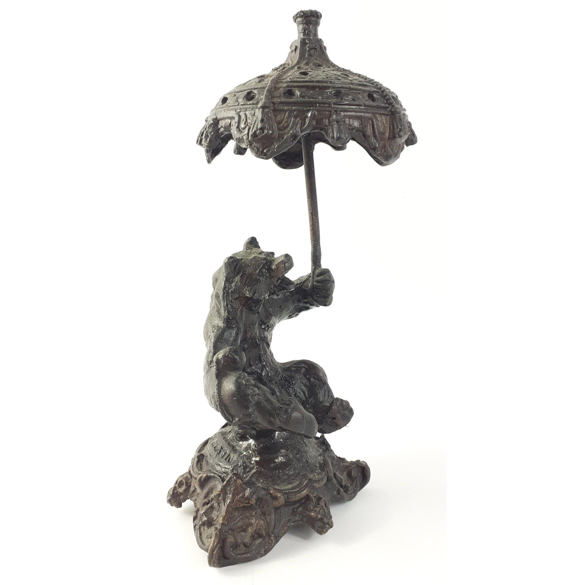 A bear holding umbrella approx 20cm tall