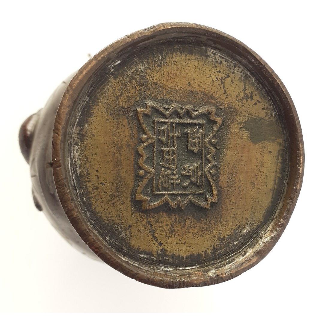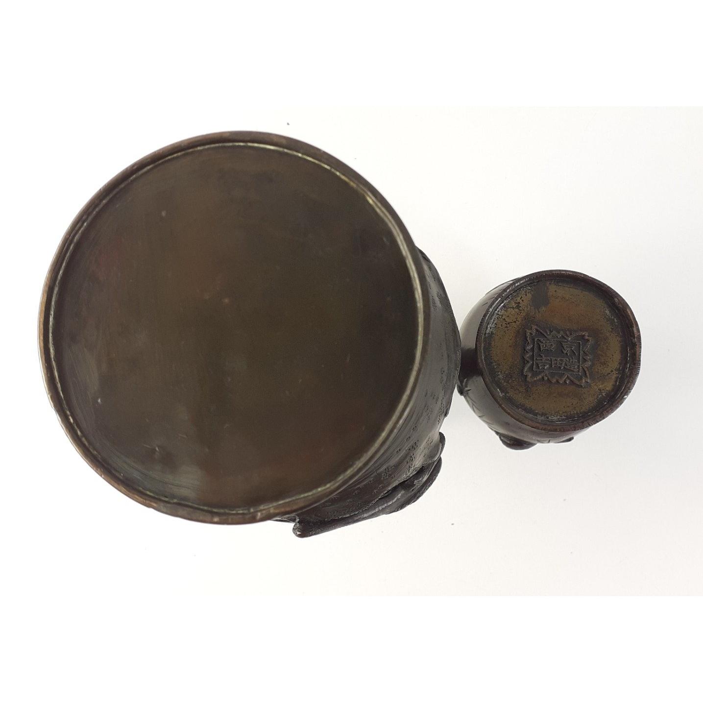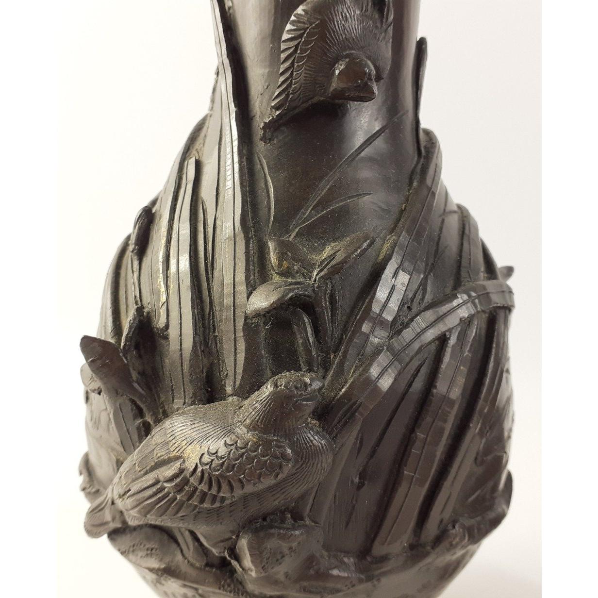 Two oriental style bronzed vases with bird decoration taller 25cm, smaller 12cm tall approx.Approx 2 pieces