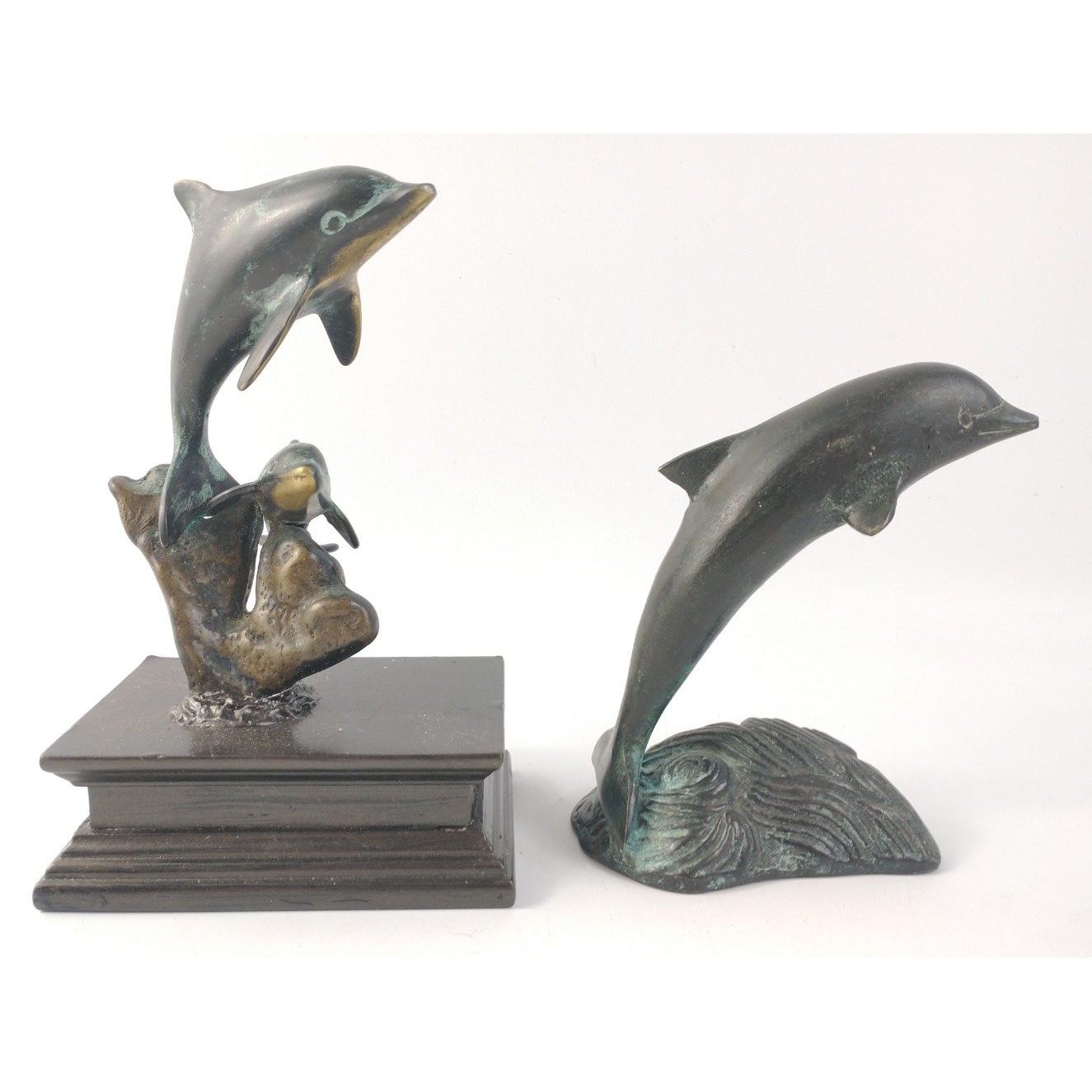 For LOVERS of DOLPHINS! A beautiful "antique-style" brass breeching dolphin and a brass dolphin mother and calf mounted on a wooden plinth.Approx 2 pieces
