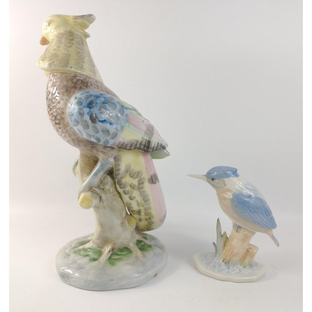 A pair of ceramic birds consisting of a tall delicately hand-painted oriental-like pheasant approx. L15cm x H35cm (has a slight chipping of paint on right wing) and a subtly pale blue kingfisher approx. L11cm x H16cm.