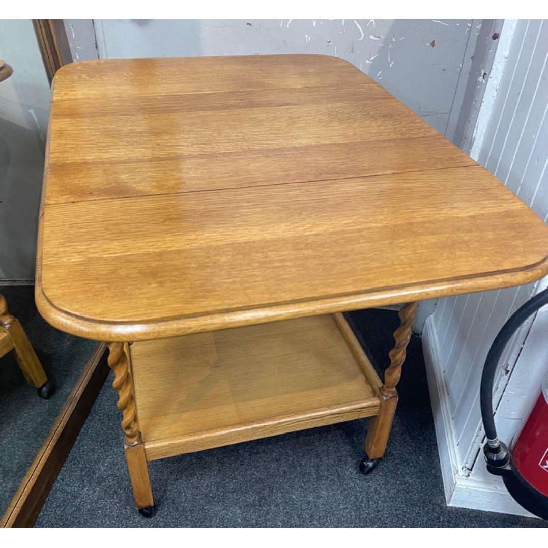 A lovely restored period drop-leaf trolley table with barley twist legs on modern castors - unextended 66cm length depth 40cm x 75cm height - extended table top dimension is 60cm x 84cm approx