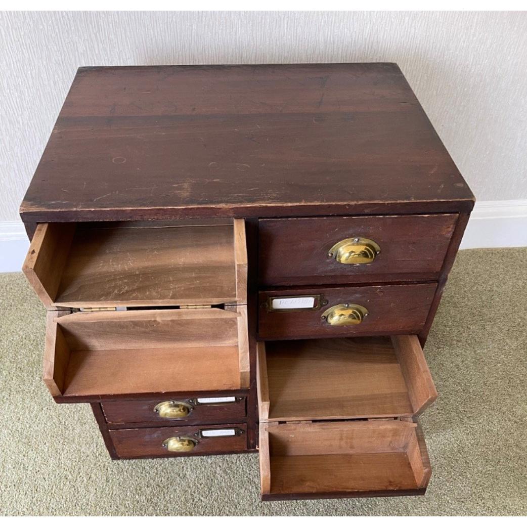 An early 20th century stationery paperwork reference drawer cabinet with fold-down drawer front with original brass pull handles - ideal storage for those all important collections! - dimensions 54cm width x 44cm depth x 54cm height