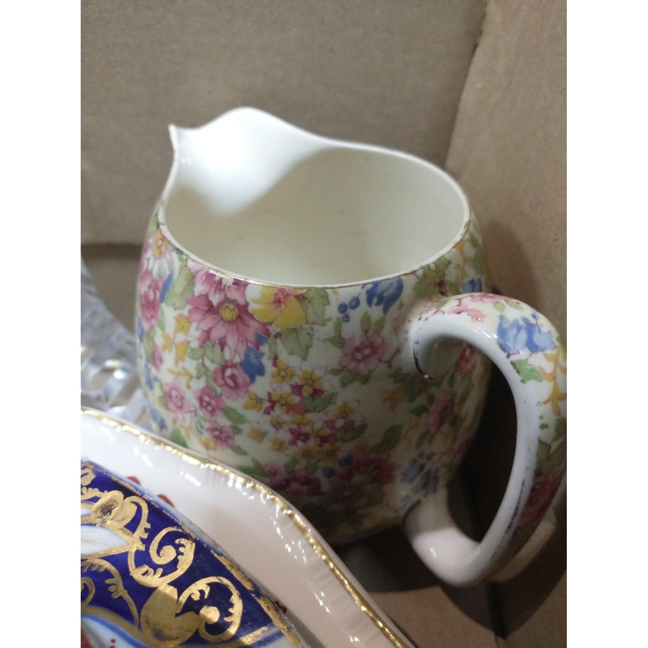 A collection of decorative china plates including ROYAL CROWN DERBY IMARI, plus a ROYAL WINTON jug, and a heavyweight crystal mantel clock