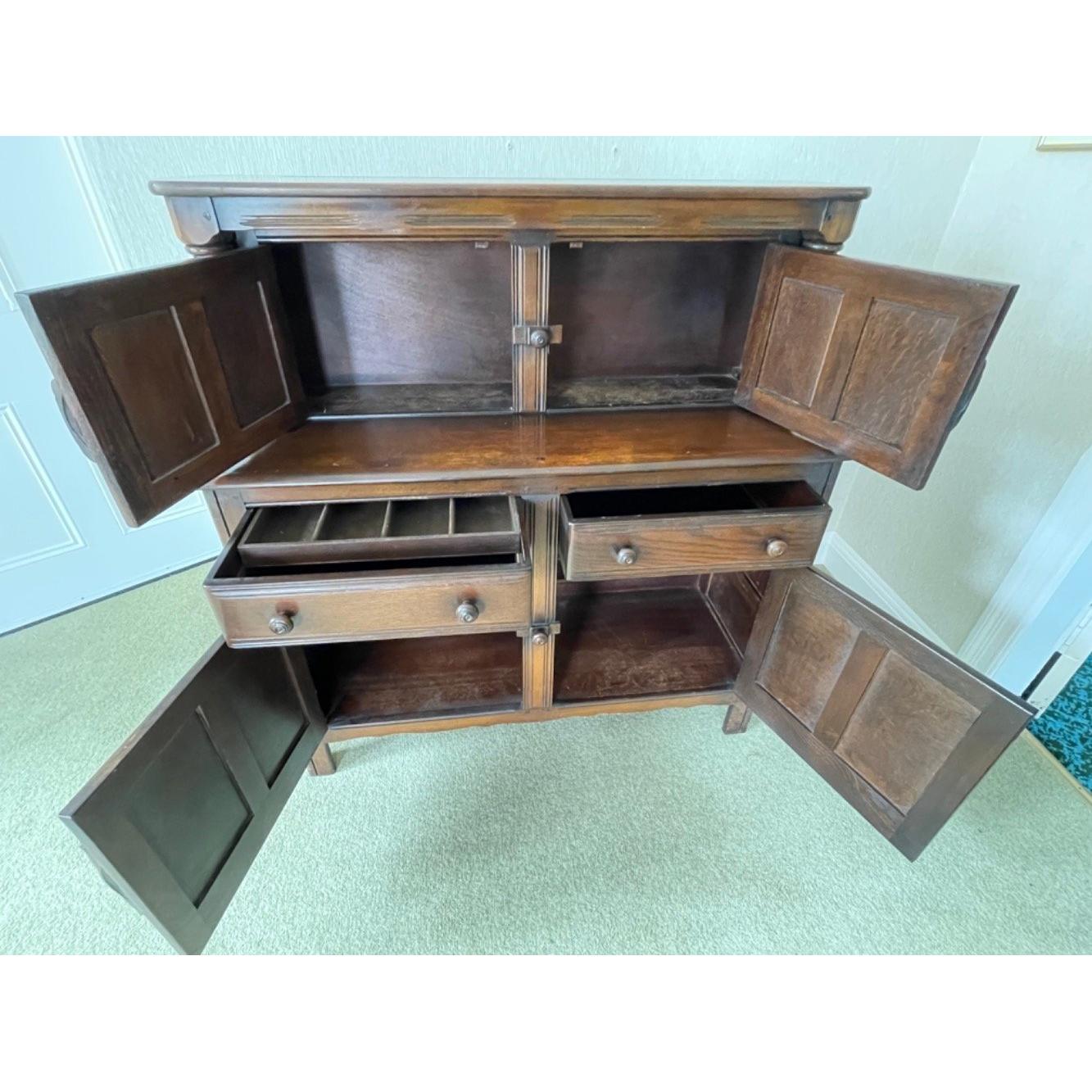 A STURDY ERCOL styled sideboard/dresser with 4 cupboards and two drawers - dimensions 4ft width x 18" depth x 5.5ft height approx