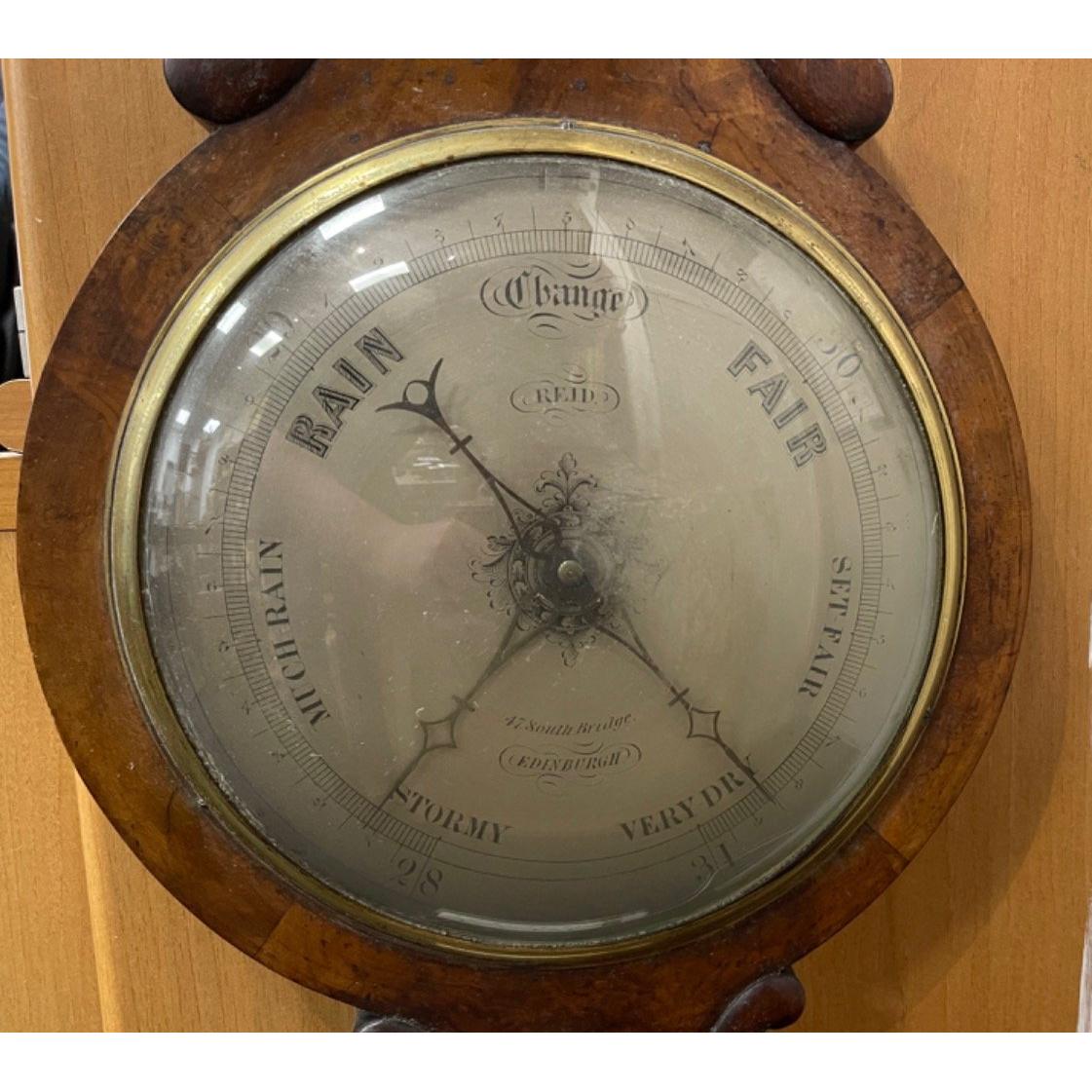ANTIQUE EDINBURGH MAKER - Scottish Aesthetic Movement Aneroid Wheel Barometer by REID 17 South Bridge EDINBURGH - some slight damage with a lid-piece missing from the top of the thermometer frame and a part scroll piece missing from the top of the piece - but this does not detract from this IMPRESSIVE piece! - dimensions 103cm height x 32cm at the widest point