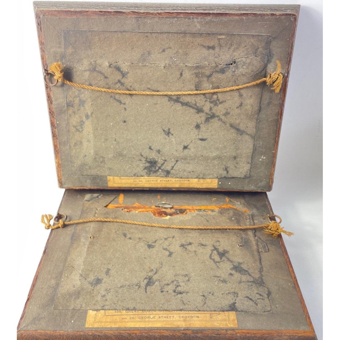 An antique pair of very well executed metal wall plaques of religious scenes. One depicts the Last Supper and the other appears to show Jesus confronting the money lenders in the temple. Each frame measures 25 x 20 cm approx and both are in good order. Possibly Vatican trip souvenirs but do appear to have remnants of older English gallery labels to rear. Really rather lovely heavy solid items.
