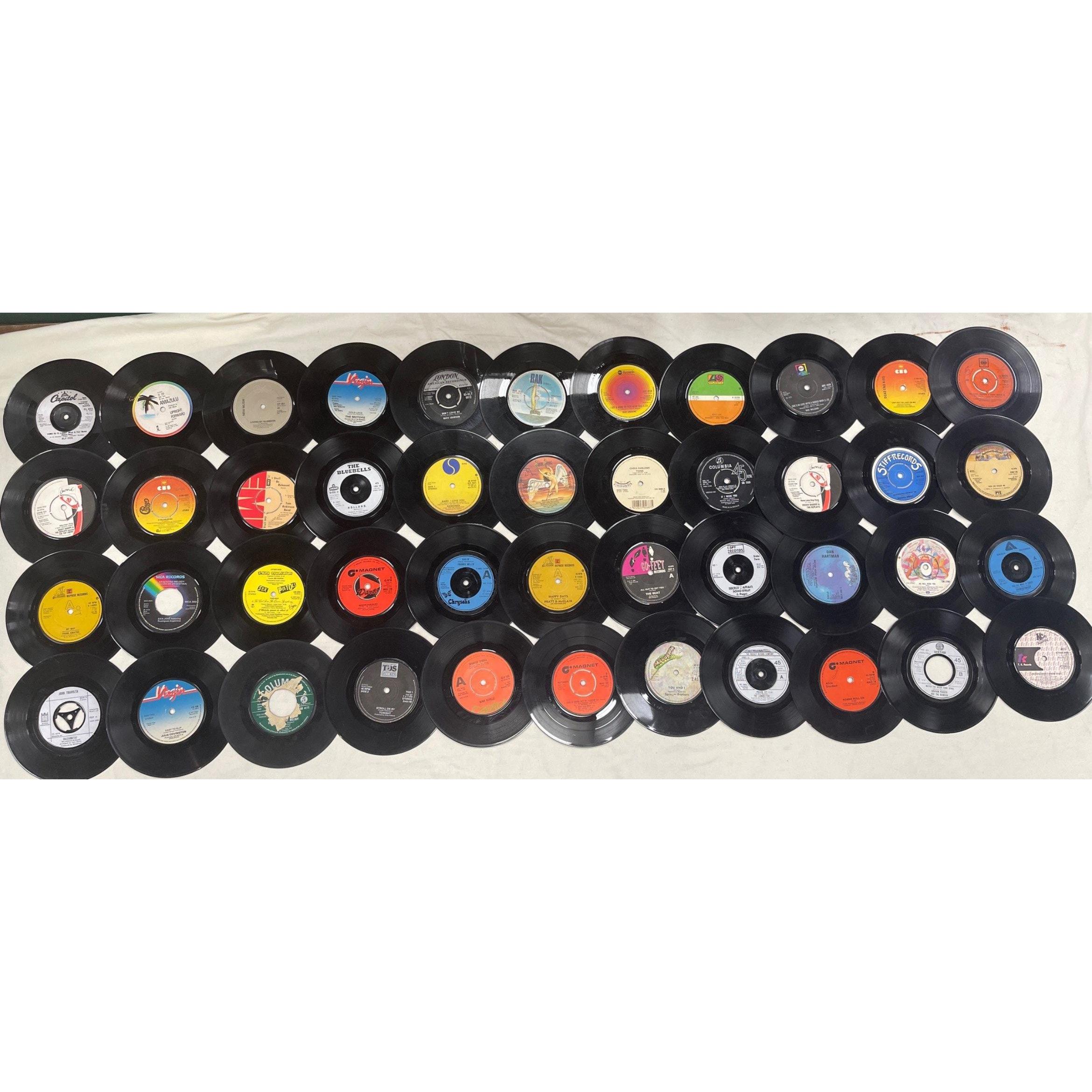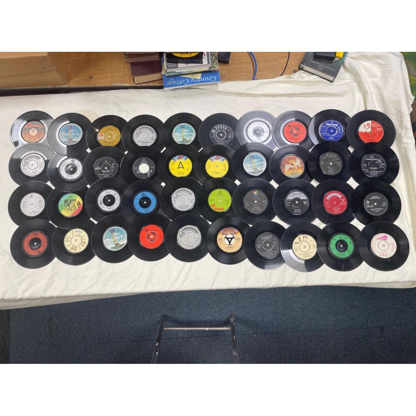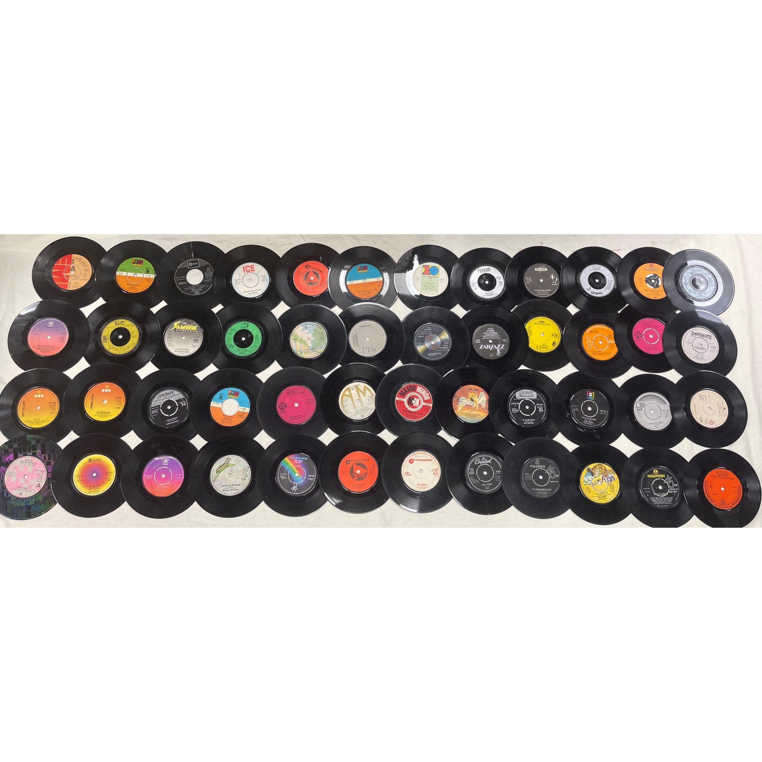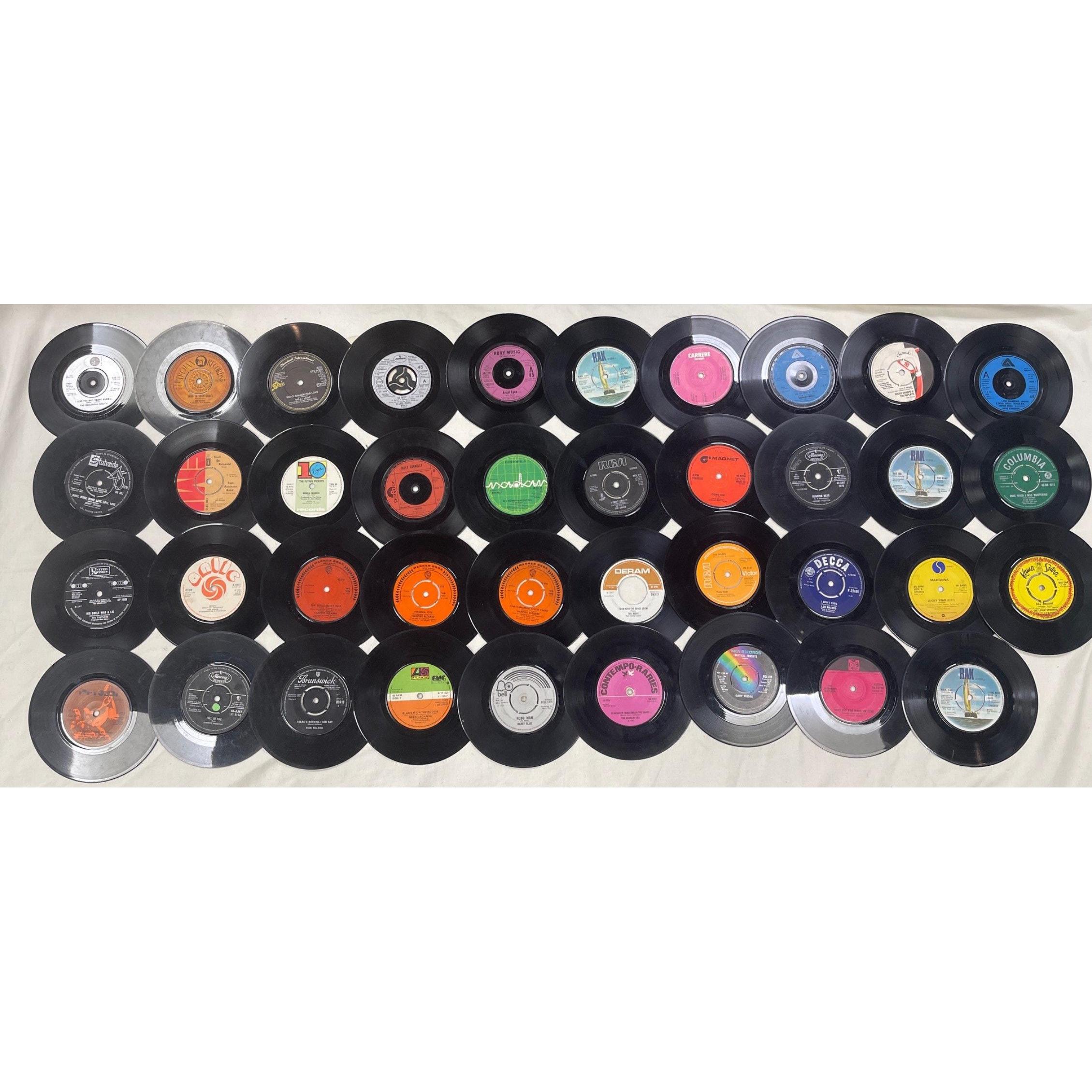 A substantial collection of over 200 sleeveless 45rpm vinyl records from a variety of recording labels including EMI, Brunswick, Stateside, Reprise Records from the 1960s and 70s and including artists such as Samantha Sang, T.Rex, The Fortunes, Hot Chocolate, and Harpers Bizarre among many others. Some discs believed to be ex-jukebox.