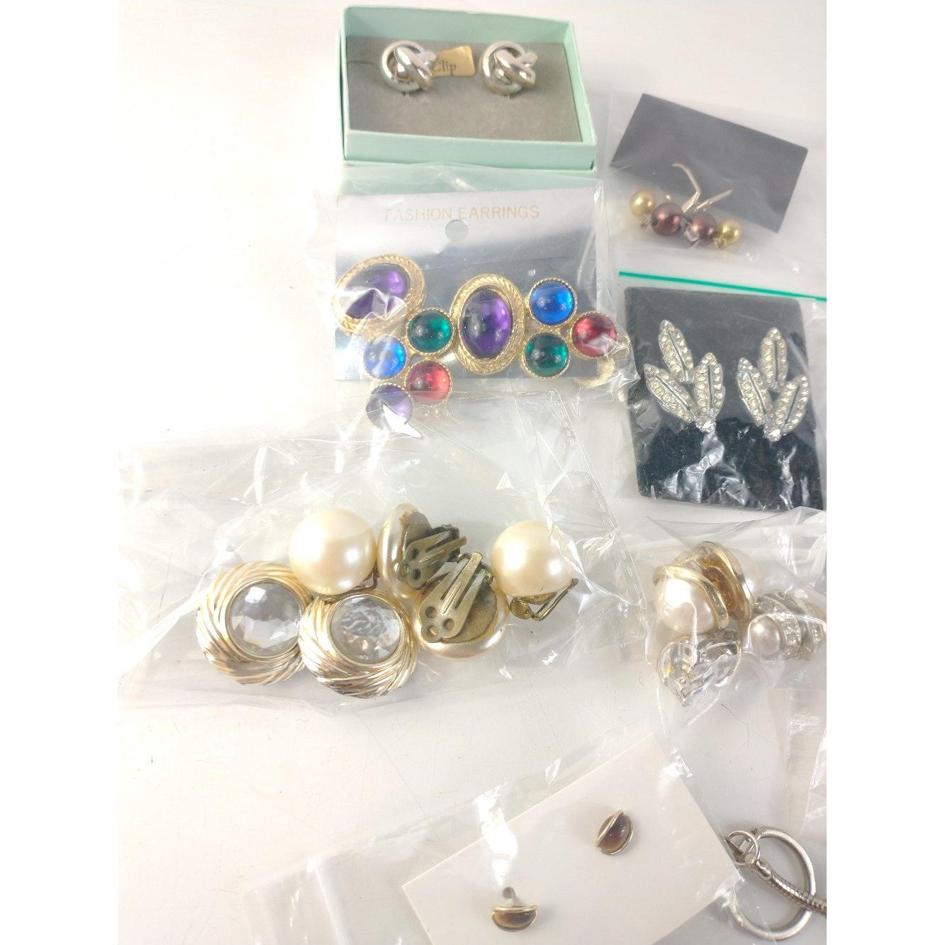 A mixed lot of costume jewellery and vintage-style earrings - both clip-on and for pierced ears - together with cuff links, key ring and a small collection of rings.Approx 16 pieces