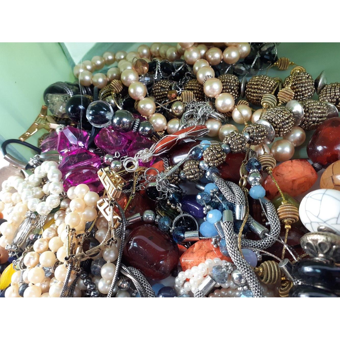A box of costume jewellery of the chunky beaded sort, mainly necklaces with some semi-precious stones