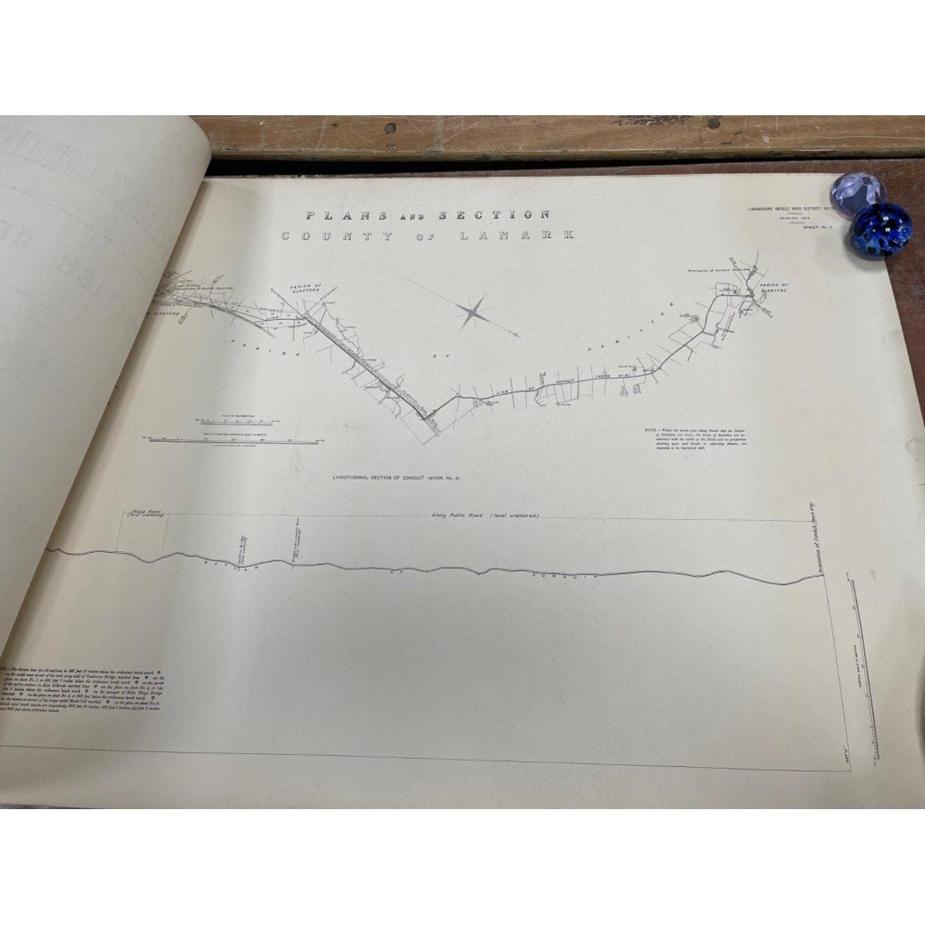 LANARKSHIRE (Middle Ward District) Water plans and sections Nov 1907 -session 1908 sheet No 5 County Of Lanark (so far as relating to the Parish of Blantyre) - large rolled-up plans really interesting reading! - dimensions 40" wide x 26.5" height approx