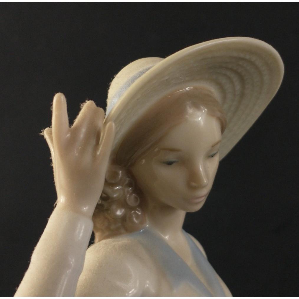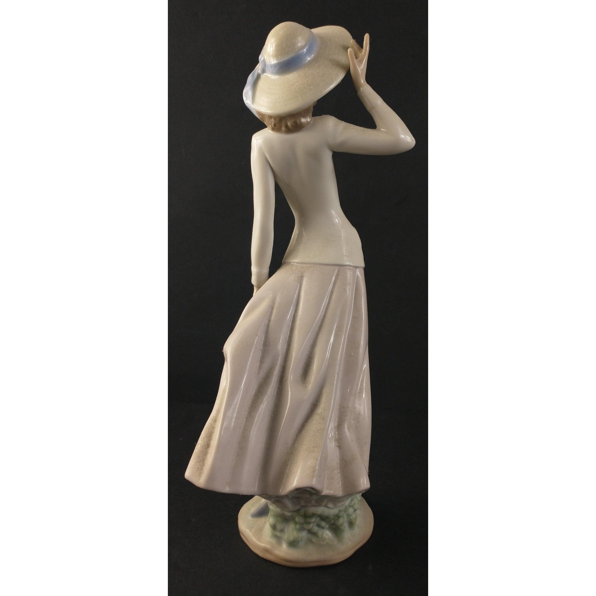 An attractively svelte LLADRO female figurine being blown by the wind. Handmade in delicately timeless pastel colours. No.:5682 / P28J. Approx. 31cm in height. In exellent condition.Approx 1 pieces