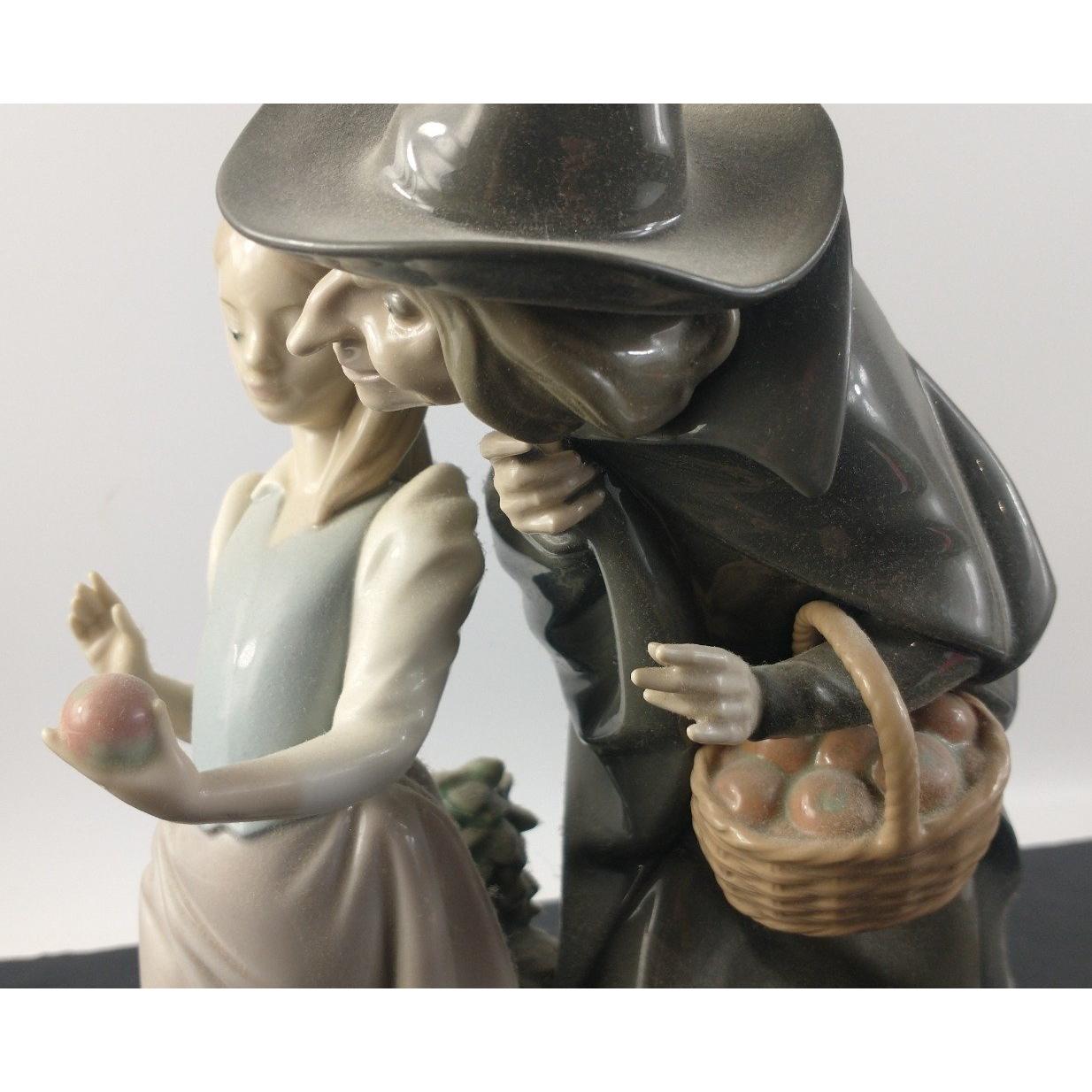 An expressive LLADRO figurine group of a young girl being offered an apple by an elderly woman in witch's hat. Nr.:E-21 F / 33. Approx. 26cm in height. In excellent condition.Approx 1 pieces