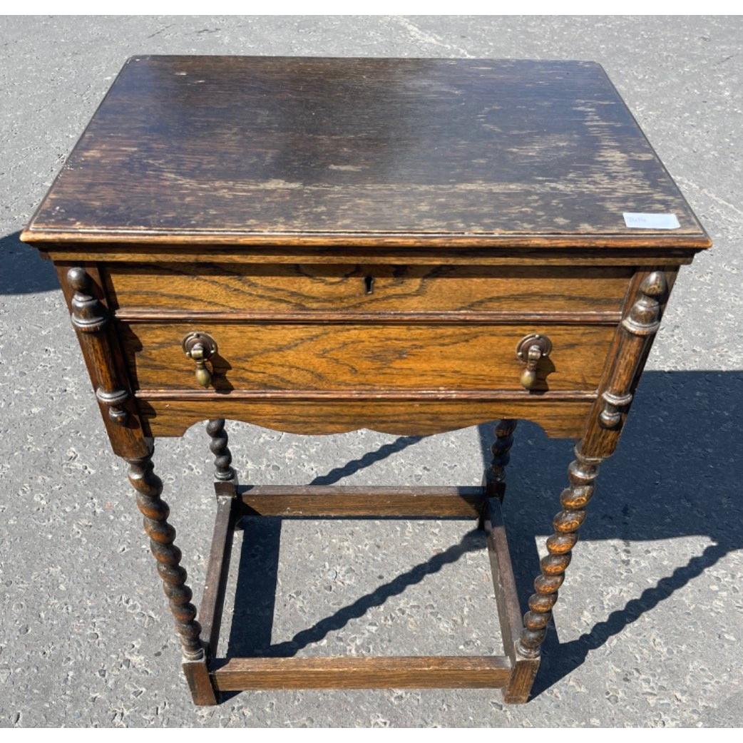 A period style CUTLERY CABINET with barley twist legs(this wee cabinet has a nice dainty feel to it!) FILLED WITH CUTLERY - 29" height x 21 depth x 14" depth contained within the lid and a drawer