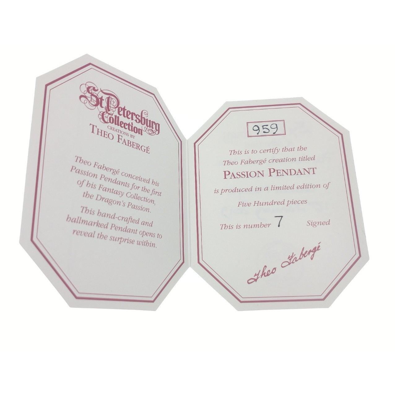 FABERGE ! St Petersburg Collection by THEO FABERGE. PASSION PENDANT TF959 World Limited Edition 7/500 pieces purchased at the world launch of Queen Mary 2 in 2019. A gorgeous blue enamelled egg with a small rotating globe of the earth inside with the continents picked out in gold. Includes original receipt from Cunard for $1500.