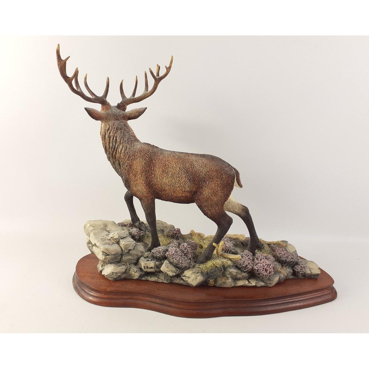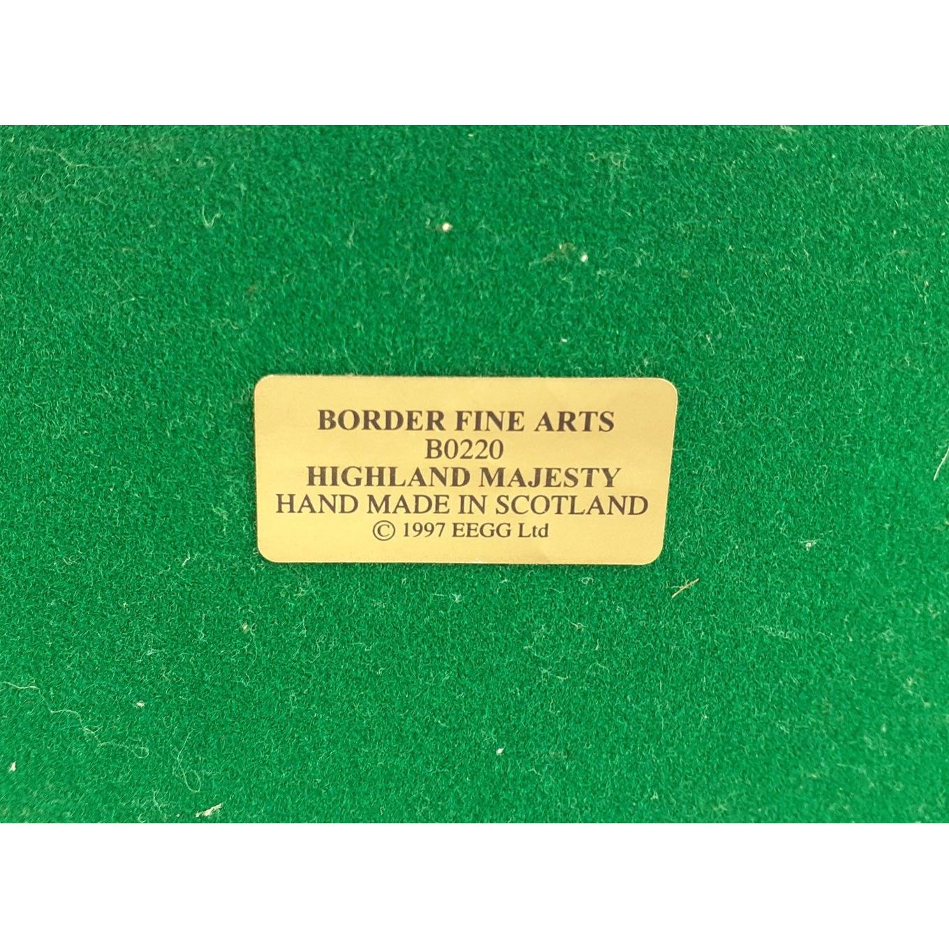 BORDER FINE ARTS' HIGHLAND MAJESTY' model No B0220 made in Scotland large model by R Roberts stamped to the model c1997 - this model comes with a separate polished wooden plinth - dimensions 14" length x 12" x depth x 6.5" approx